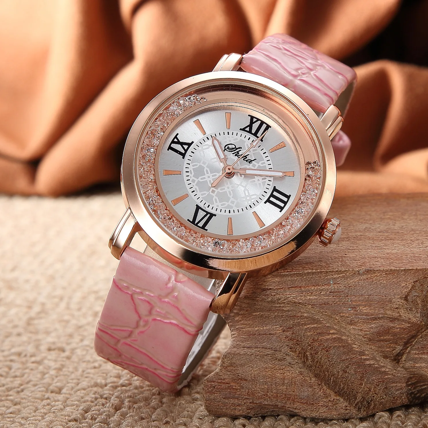 Женские электронные часы Стразы, модные женские студенческие повседневные кварцевые часы с кожаным ремешком, женские часы