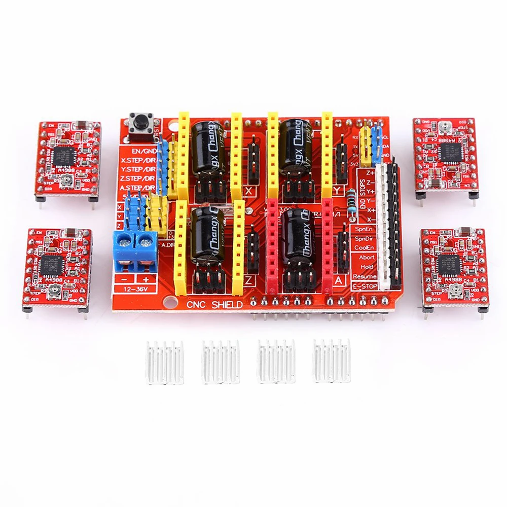 Плата расширения с ЧПУ щит V3 с Drv8825 A4988 Драйвер шагового двигателя с радиатором для Arduino V3 гравировка детали для 3D-принтера