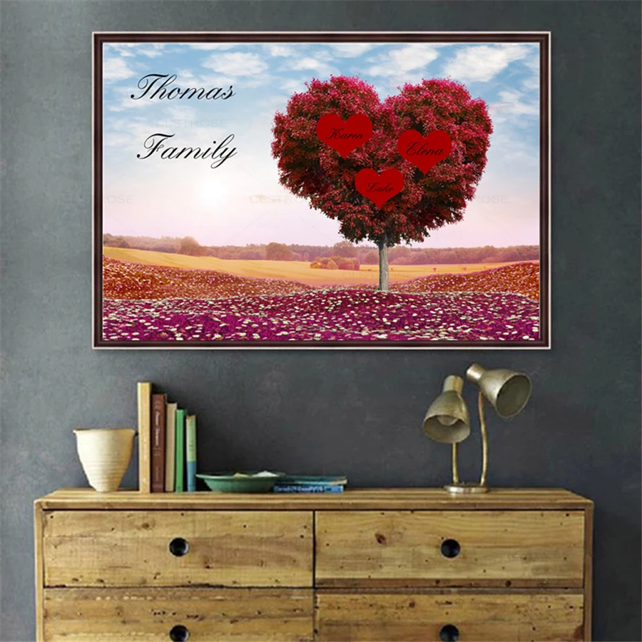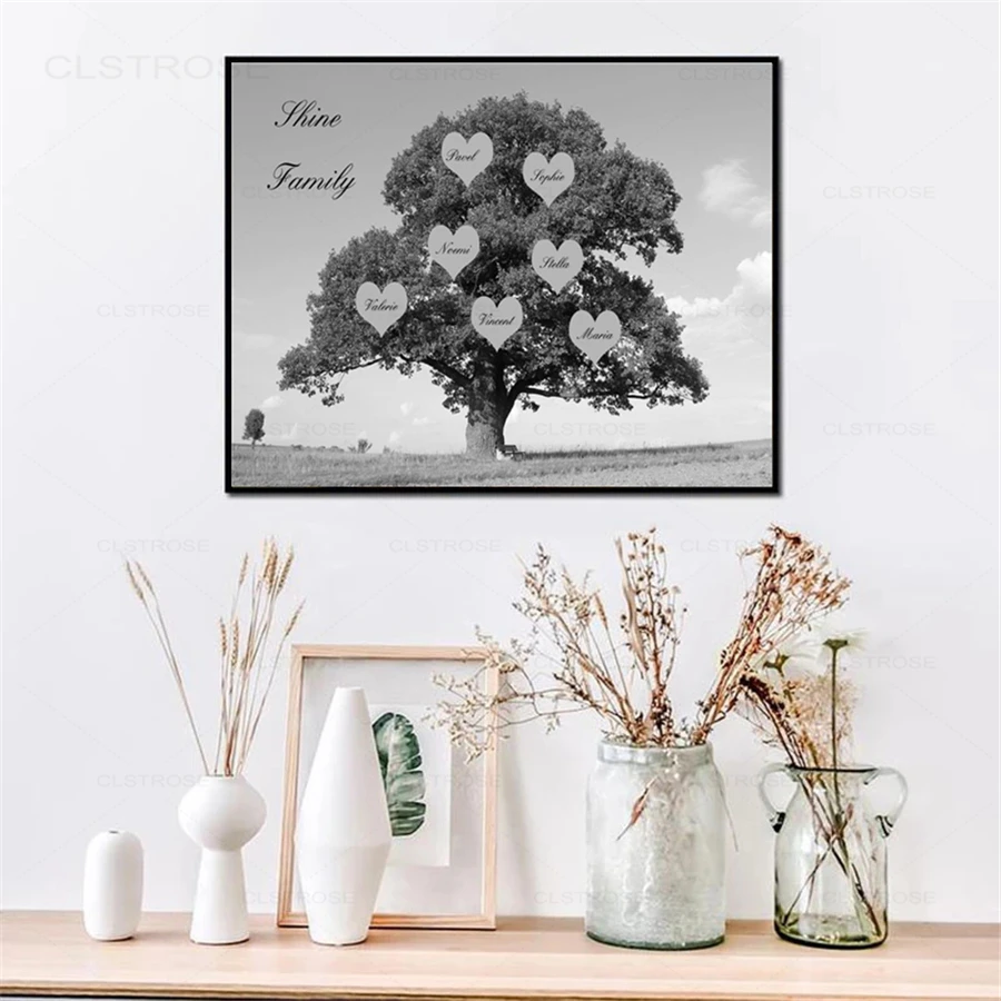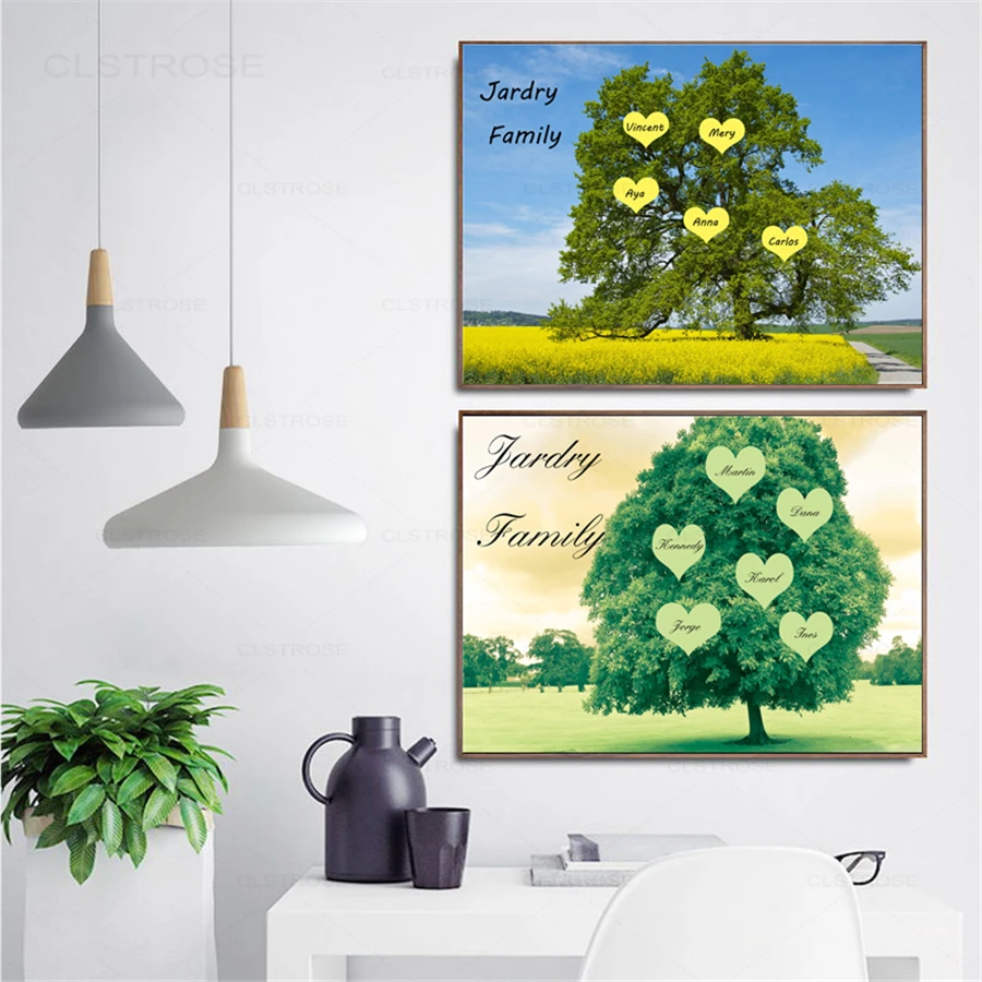 Настенная Картина на холсте с именем под заказ, семейные деревья, пейзаж, настенный художественный плакат, креативный подарок, семейная фотография, теплые украшения для дома