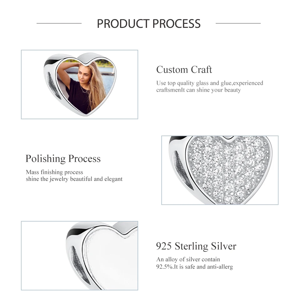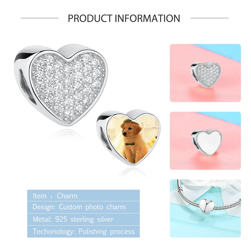 Шармы-бусины ELESHE из серебра 925 пробы с индивидуальным фото на заказ, подвески-шармы в форме сердца, подходят для оригинального браслета сделай сам, модные ювелирные изделия из серебра 925 пробы