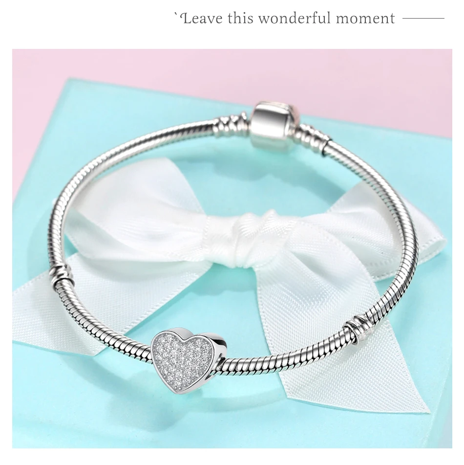 ELESHE 100% 925 серебро сердце с украшением в виде кристаллов Шарм ...