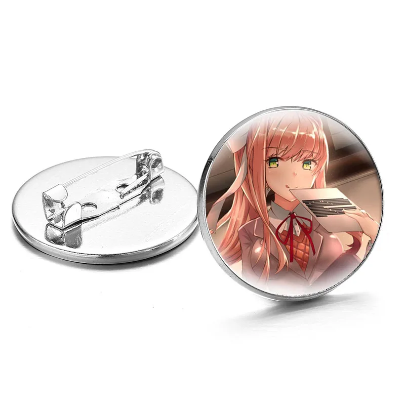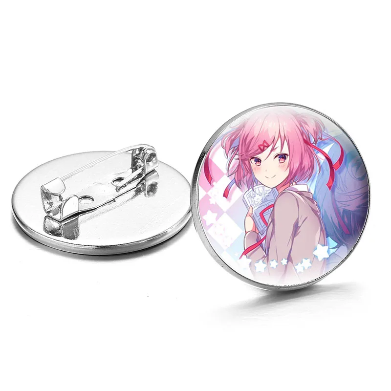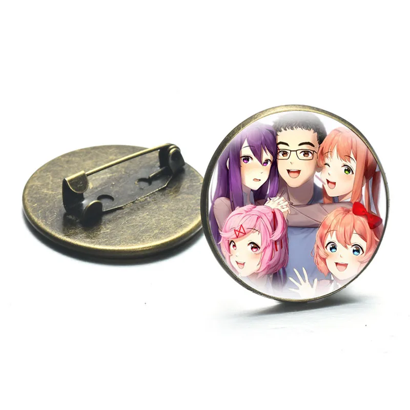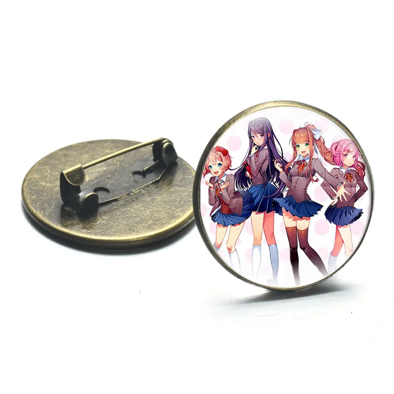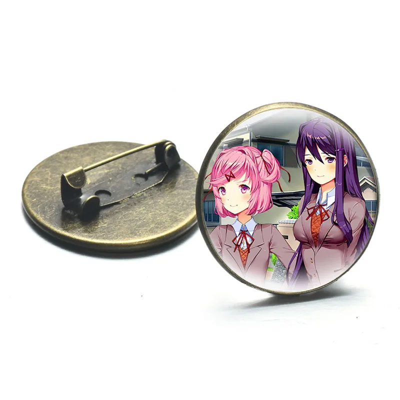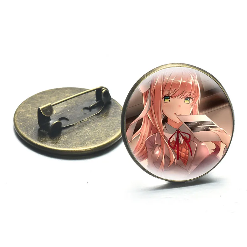 DDLC Аниме игра Броши Моника Sayori Natsuki Мультфильм фигурки стекло кабошон стекло Металлические Значки декоративные косплей ювелирные изделия