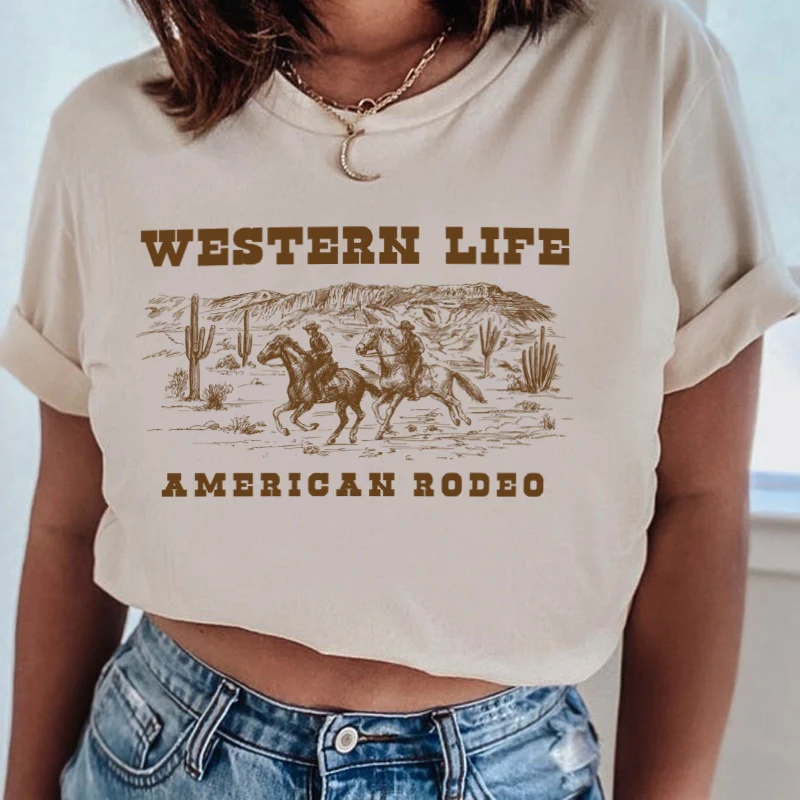 Ковбой Родео Ретро Женская футболка ковбойский западный стиль кантри Винтажная футболка хлопок короткий рукав Милая Эстетическая футболка