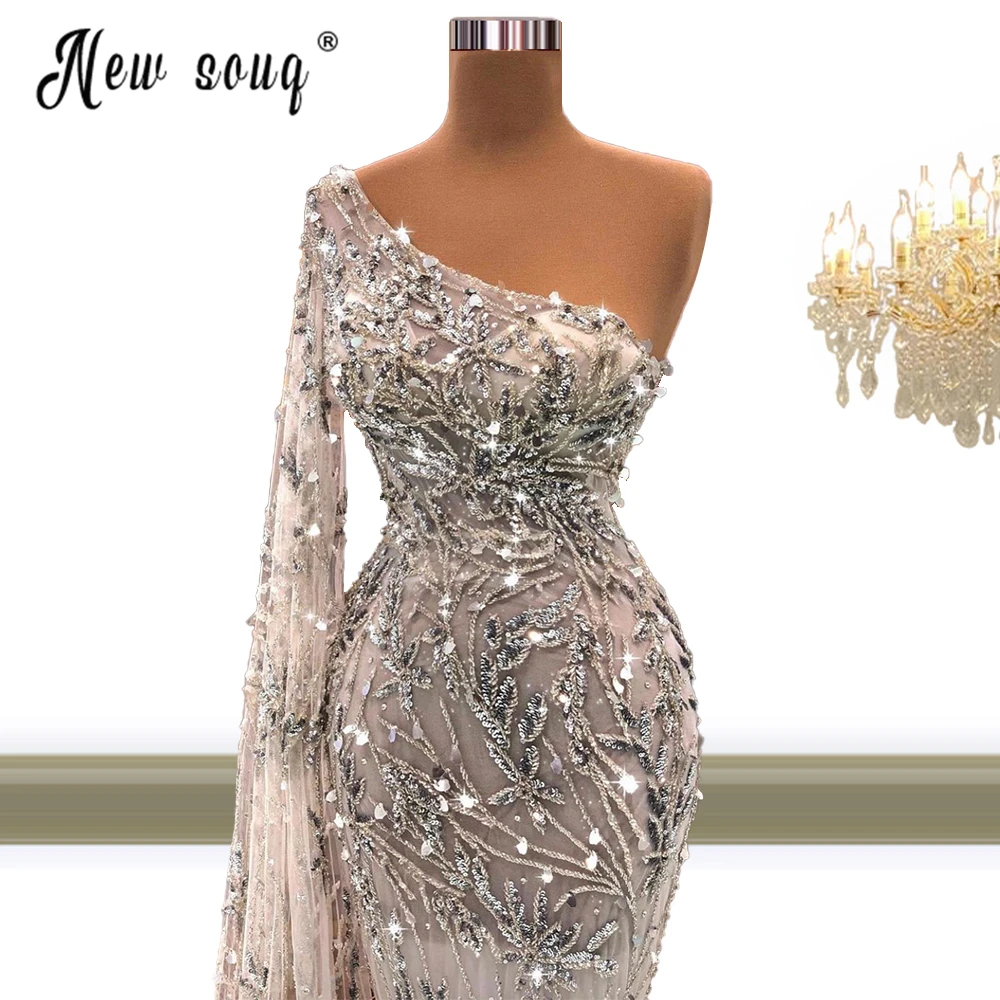 Серебряные вечерние платья с одним открытым плечом, соблазнительные элегантные женские платья с бисером для вечеринки и выпускного вечера, 2022