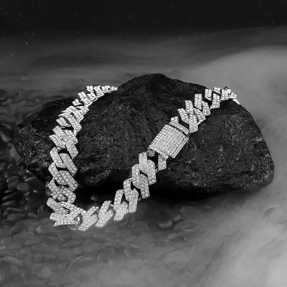 15 мм Miami Prong кубинская цепочка звено серебряного цвета ожерелья 2 ряда полный Iced Out Стразы Набор браслетов для мужской цепочки в стиле хип-хоп