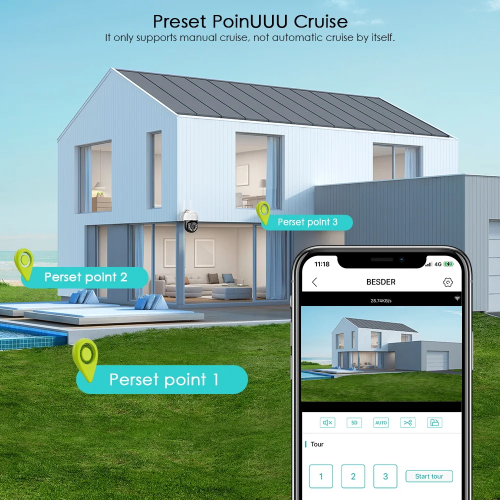Поддерживает несколько заданных точек, вы можете отметить местоположение, чтобы Камера могла путешествовать по этому месту.