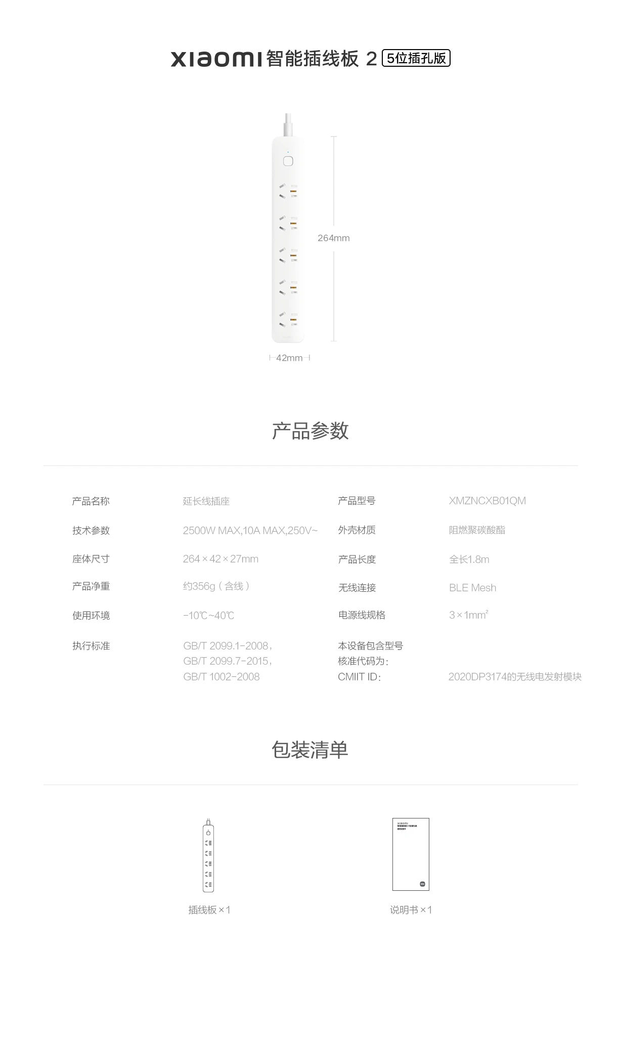 Номер моделиXiaomi Mijia Smart Power Strip Outlet 2