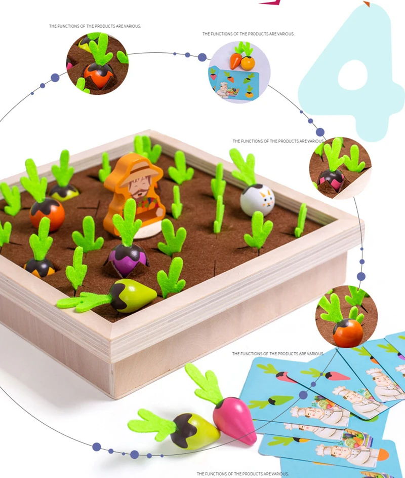 Игрушки Монтессори познавательные обучающие игрушки для детей Детские игрушки Урожай моркови материал Монтессори яблоки Магнитные деревянные игрушки