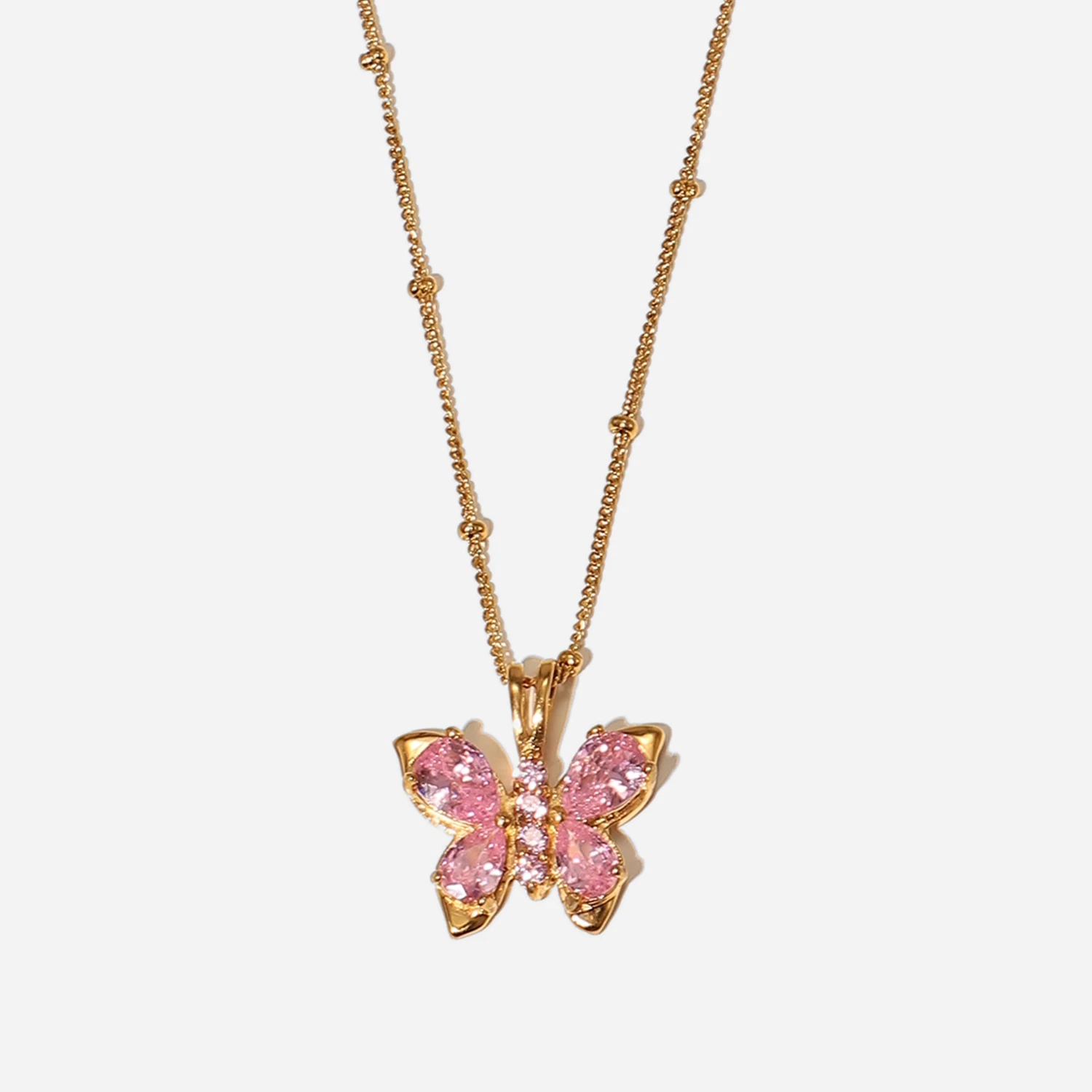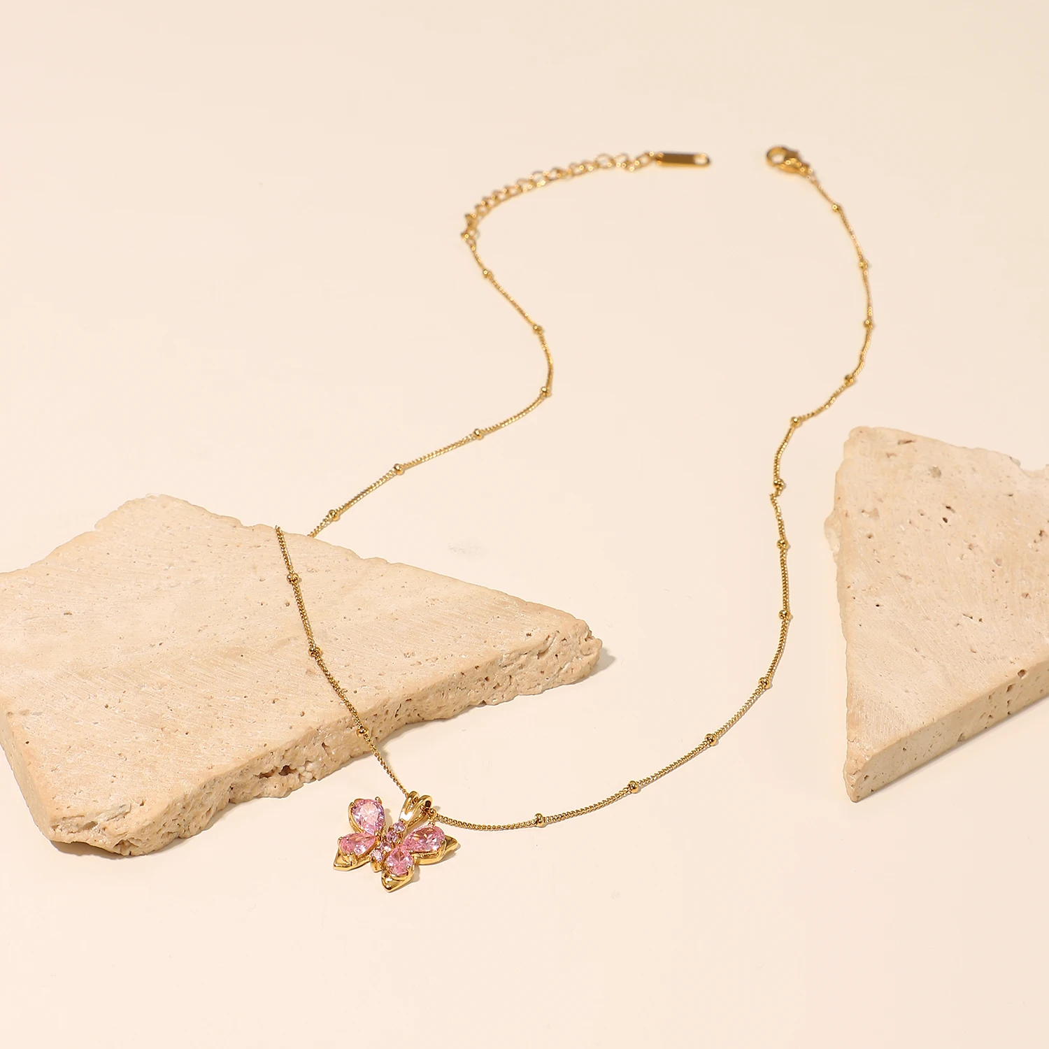 Новый трендовый 18K позолоченный подарок из нержавеющей стали ювелирные изделия розовый циркон кулон в форме бабочки ожерелье для женщин
