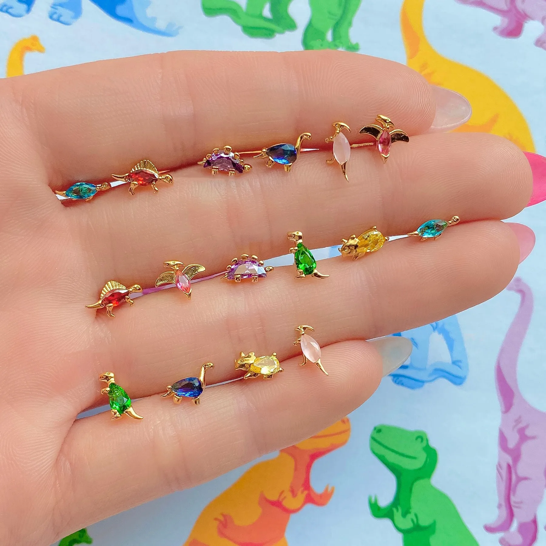 Трендовые серьги в стиле Ins, серьги-гвоздики с динозавром, циркони...