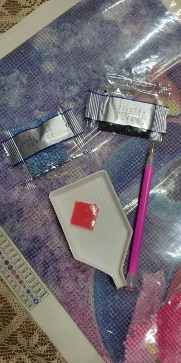 2. Вставьте круглый конец ручки в Дозирующий цемент (нажмите, чтобы сохранить цемент на месте).3. Используйте круглый конец ручки, чтобы приклеить бриллиант и слегка нажмите, чтобы удалить любой дополнительный цемент.4. Разорвите частичную пленку и поместите алмаз на холст в соответствии с соответствующим номером.5. Если вы приклеите алмаз к неправильной области на картине, удалите алмаз пинцетом.6. После завершения слегка прижмите алмазы рукой или книгой, чтобы убедиться, что алмазы надежно закреплены.