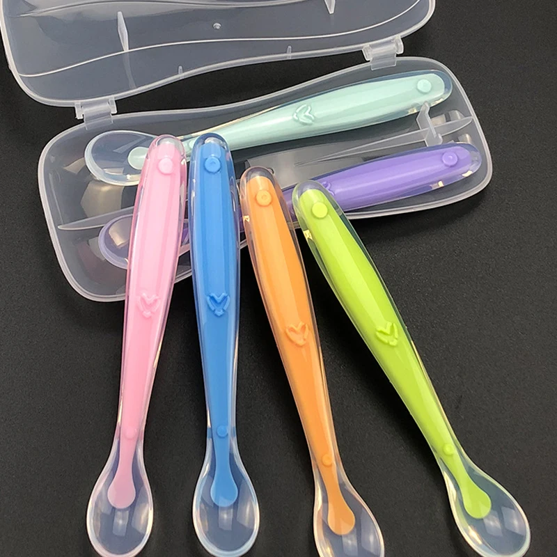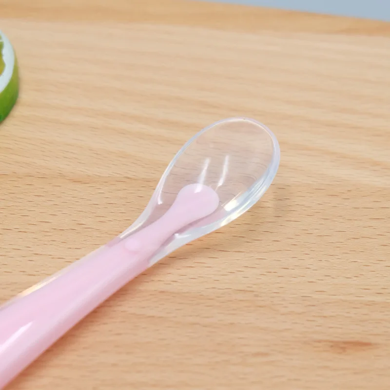 Детская силиконовая Мягкая ложка, безопасные ложки с датчиком температуры ярких цветов, детские инструменты для кормления ребенка, ложка для супа и лекарств для младенцев