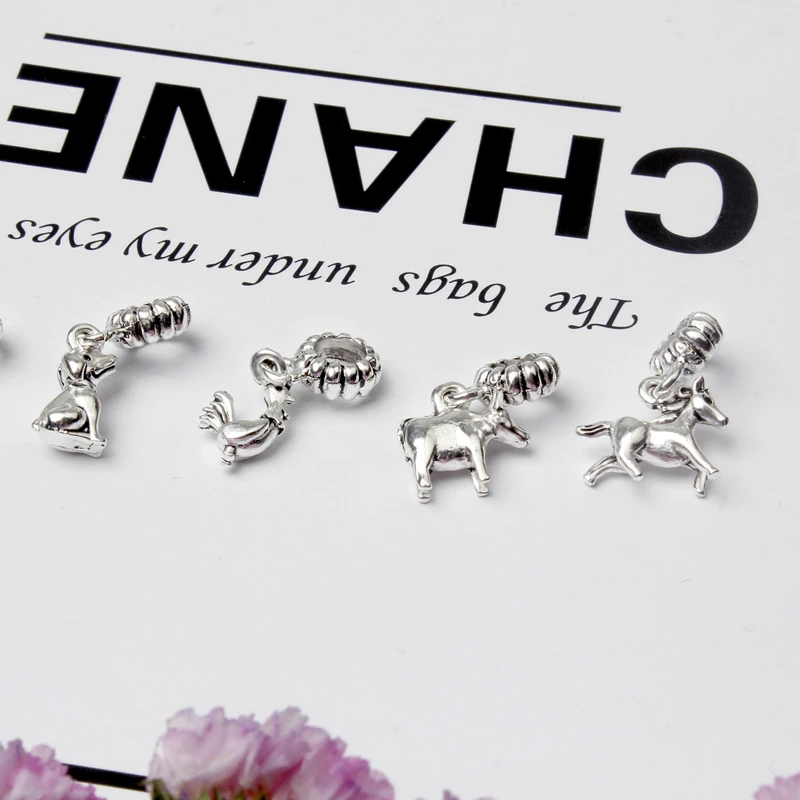 12 символов, животные, подвеска сделай сам, подходит для браслетов Pandora, женские овечки, кролик, собака, китайские знаки зодиака, бусины для изготовления украшений