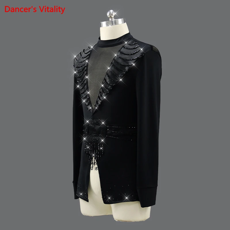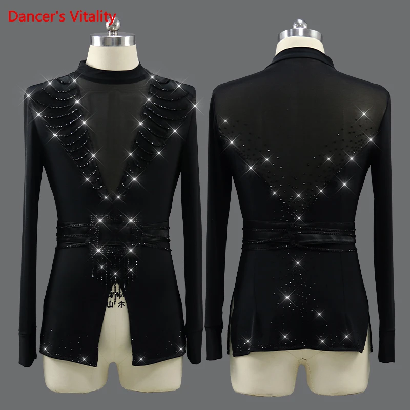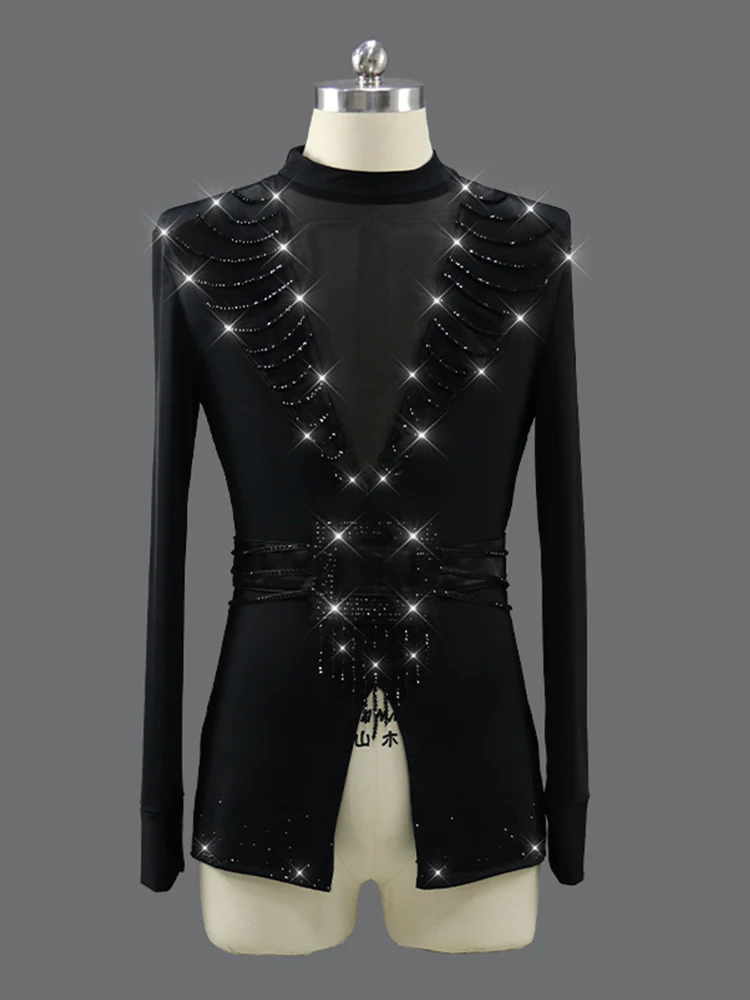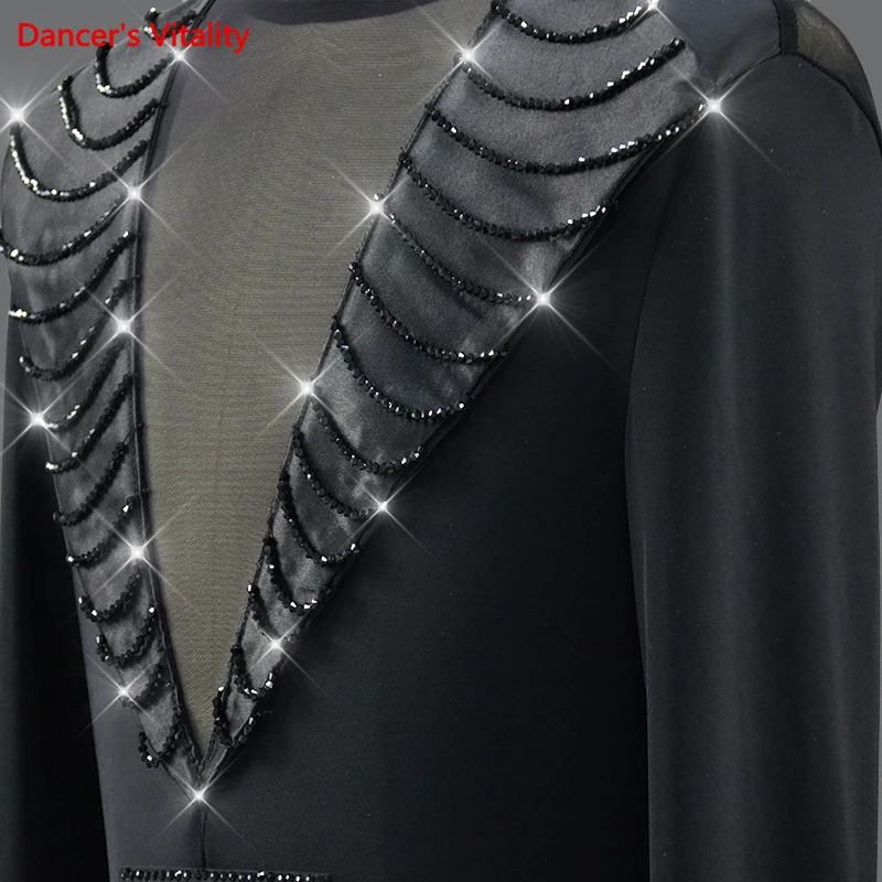Новинка, Мужская одежда для латиноамериканских танцев, рубашка для мужчин, танцевальные костюмы для конкурсов латиноамериканских выступлений, высококачественная искусственная кожа