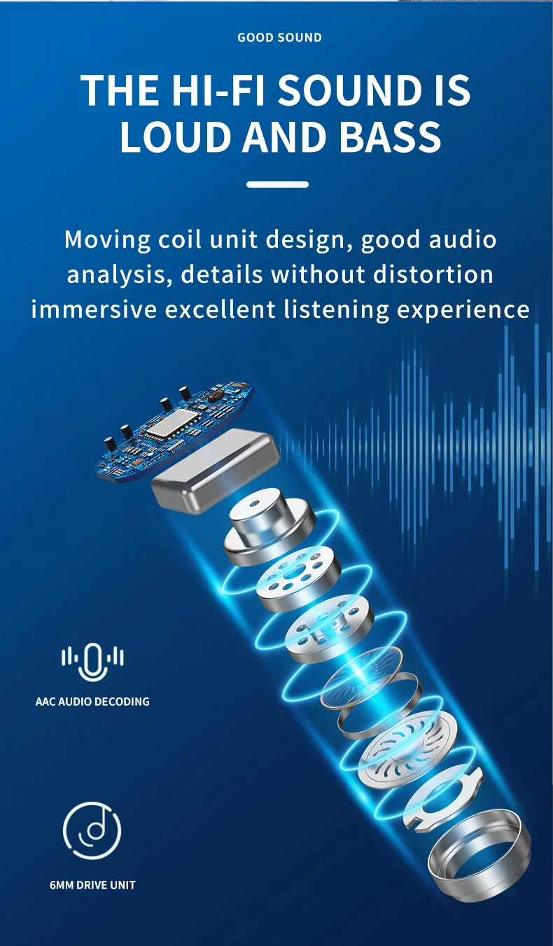 Беспроводные наушники TWS Bluetooth 5,1 спортивные наушники с сенсорным управлением Водонепроницаемая гарнитура1, Bluetooth V5.1 поддерживает большинство устройств bluetooth и низкое энергопотребление2, он может полностью зарядить 2 наушника около 8 раз, предложить больше времени для музыки.3, с водонепроницаемой технологией, больше не нужно беспокоиться о воде и поте4, 10MMS двойной привод, наслаждайтесь 9D сильным глубоким басовым звуком музыки5, популярная функция управления одной кнопкой, поддержка переключения песен, телефонных звонков и голосовых вызовов.Списки аксессуаров A, B:2 * Bluetooth наушники1 * чехол для зарядки1 * USB кабель1 * Руководство пользователя2 * чашки для наушников (размер L,M)