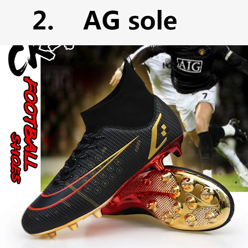 Мужские футбольные ботинки до щиколотки AG, дышащие двухцветные спортивные кроссовки для улицы, большие размеры 35-45
