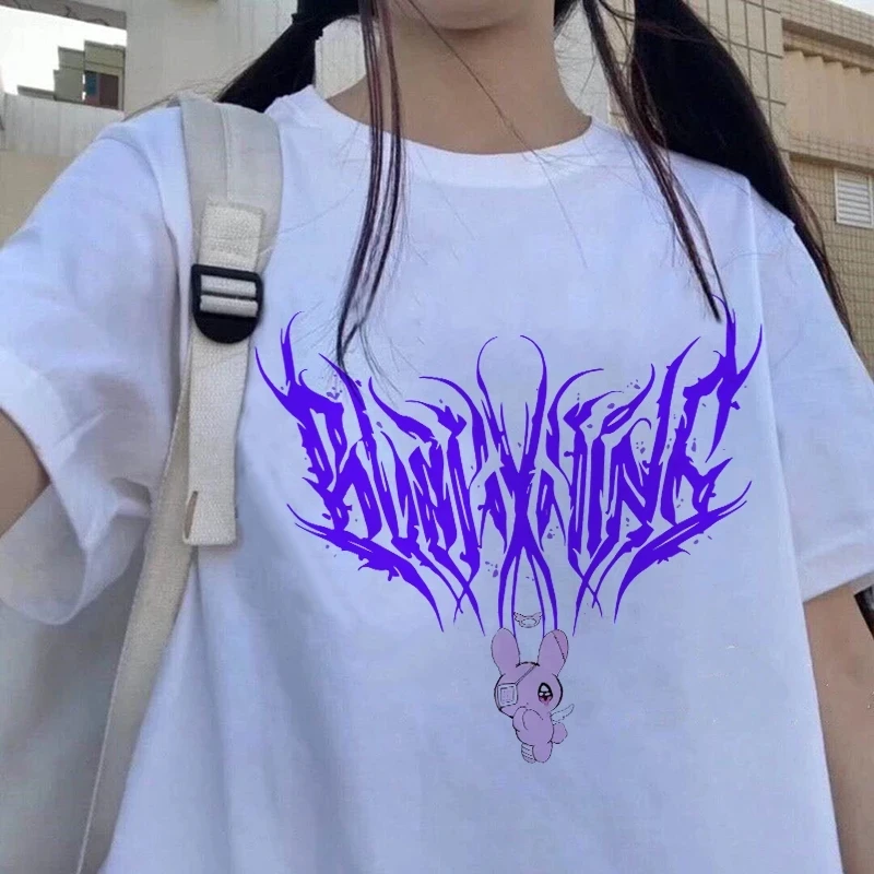 Женский топ в стиле Харадзюку, готический топ с коротким рукавом и надписью, с кроликом, повседневный свободный садовый воротник в уличном стиле для девочек