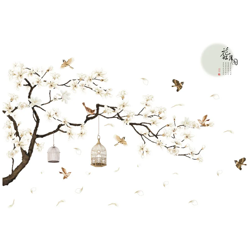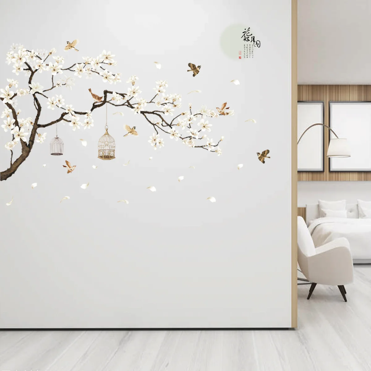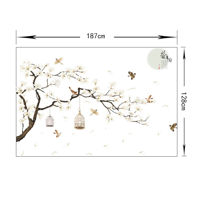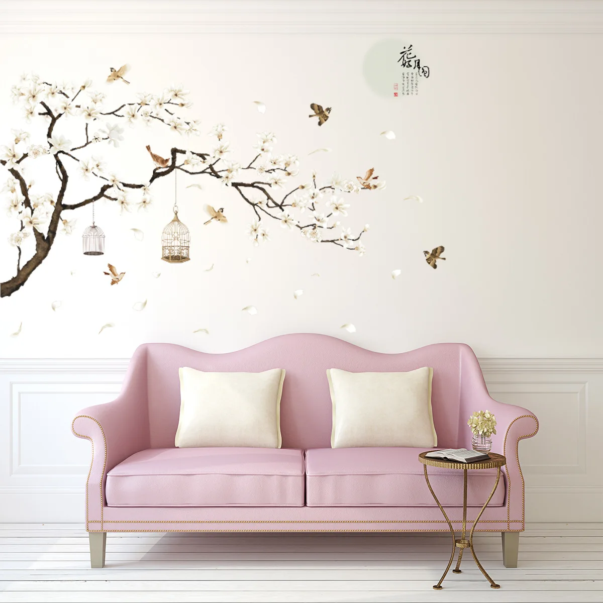 Наклейки на стену большого размера сделай сам, самоклеящиеся обои с птицами, цветами для гостиной, спальни, украшение, 3d наклейки на стену, домашний декор