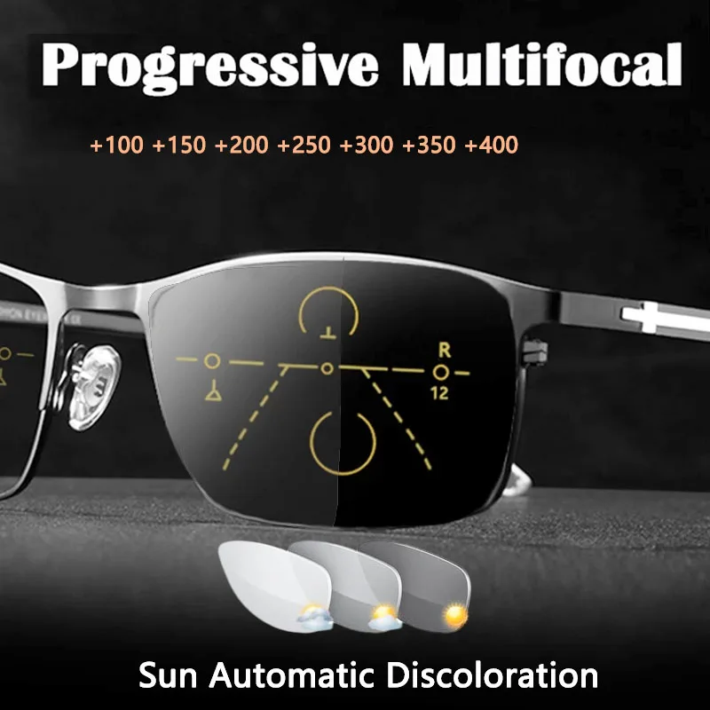 Многофокальные очки для чтения дальнего действия, фотохромные Модные мужские очки для вождения, легкие оптические очки с УФ-защитой