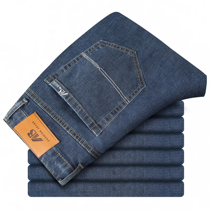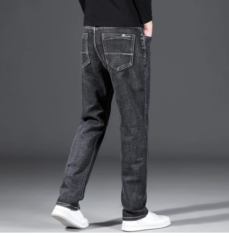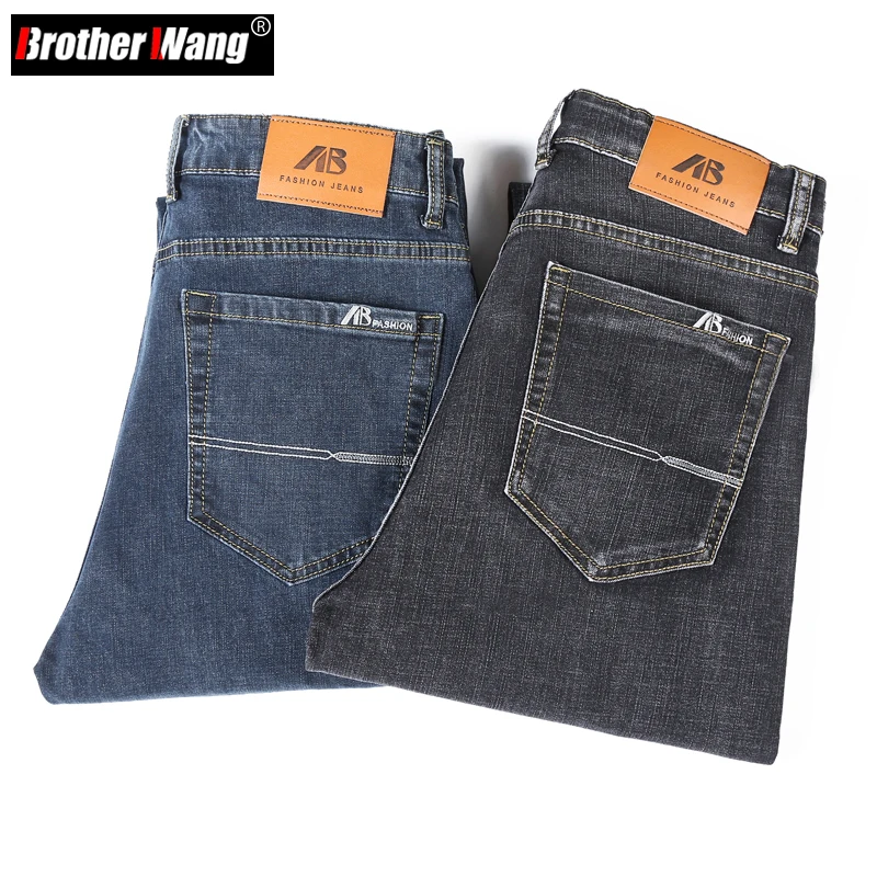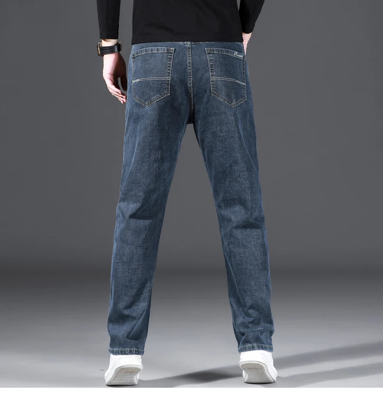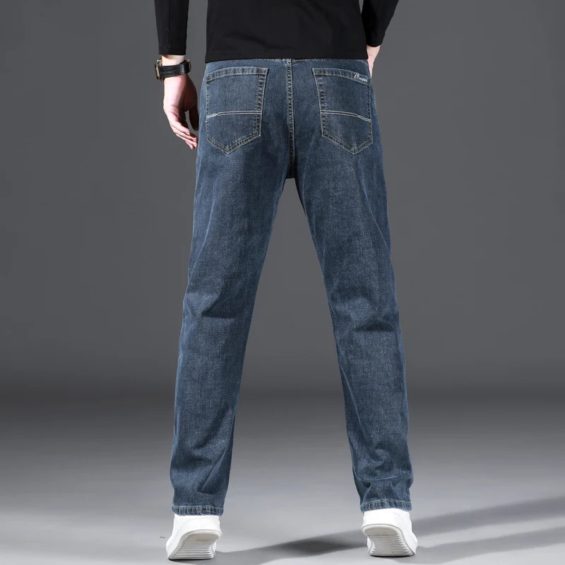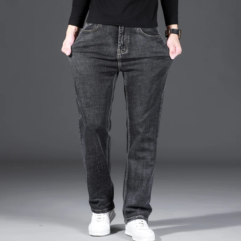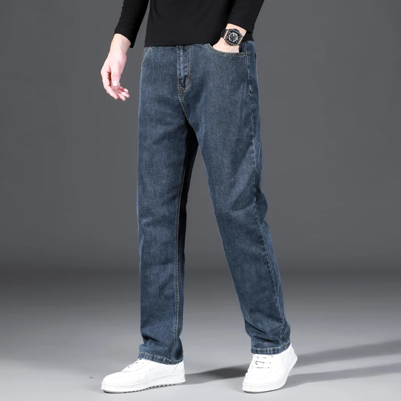 2022 Весенние новые мужские свободные прямые Стрейчевые джинсы, классический стиль, Бизнес Мода, повседневные джинсовые хлопковые брюки, мужские брендовые Синие Серые