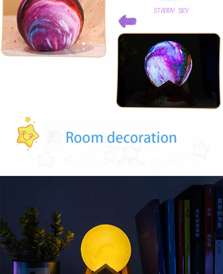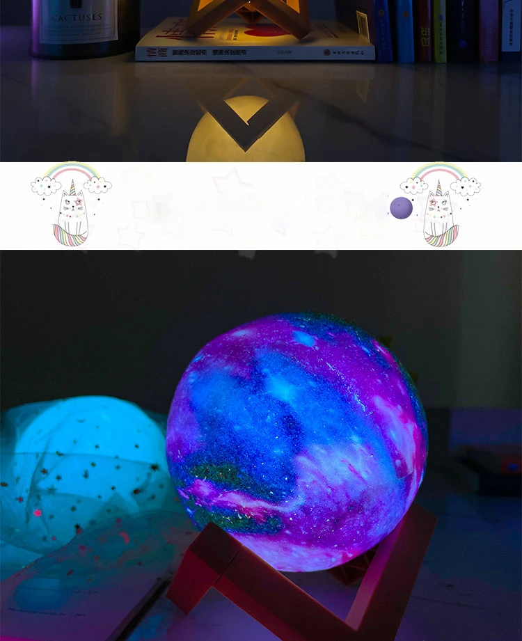 3D Лунная лампа, ночник, светильник, украшение для дома с подставкой, звезда, галактика, 3D лунный ночник, Детский Рождественский подарок на день рождения