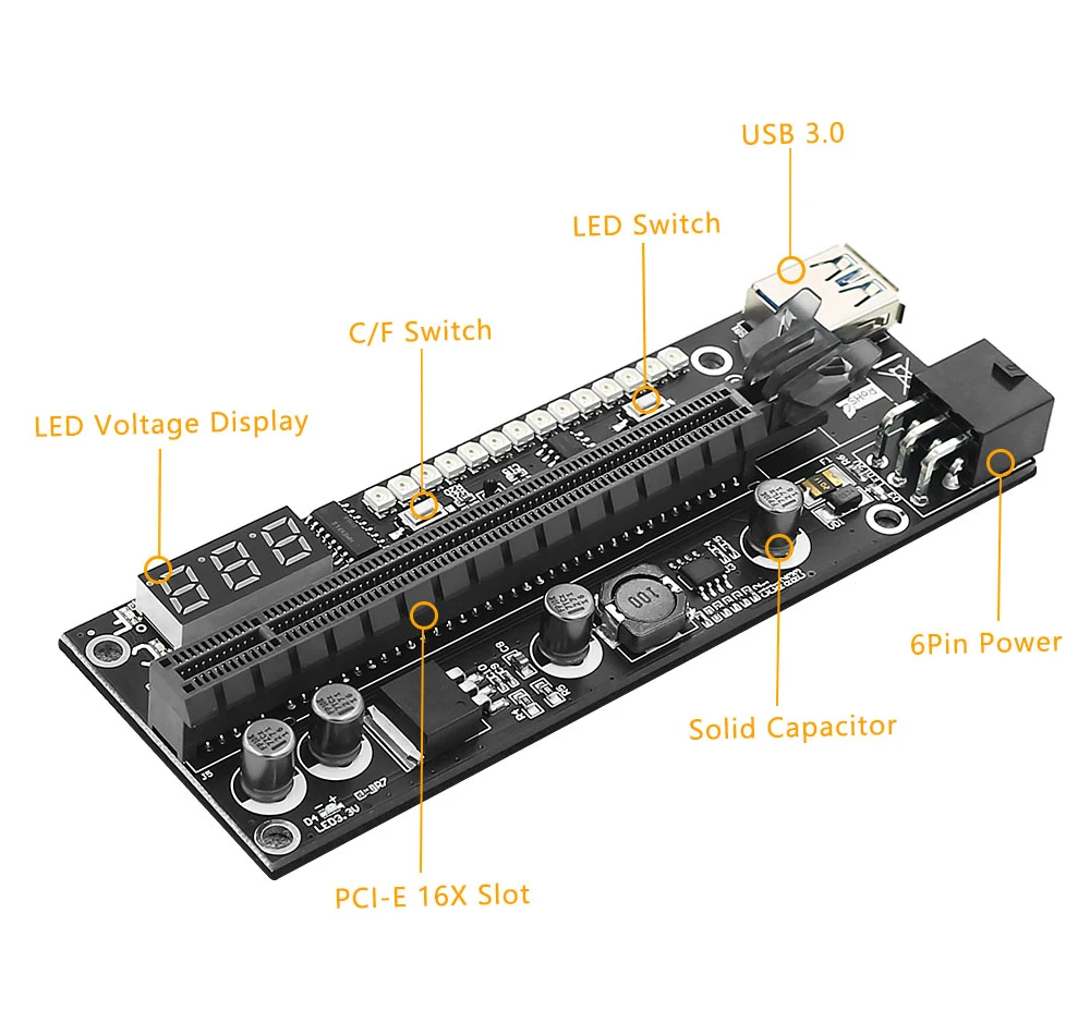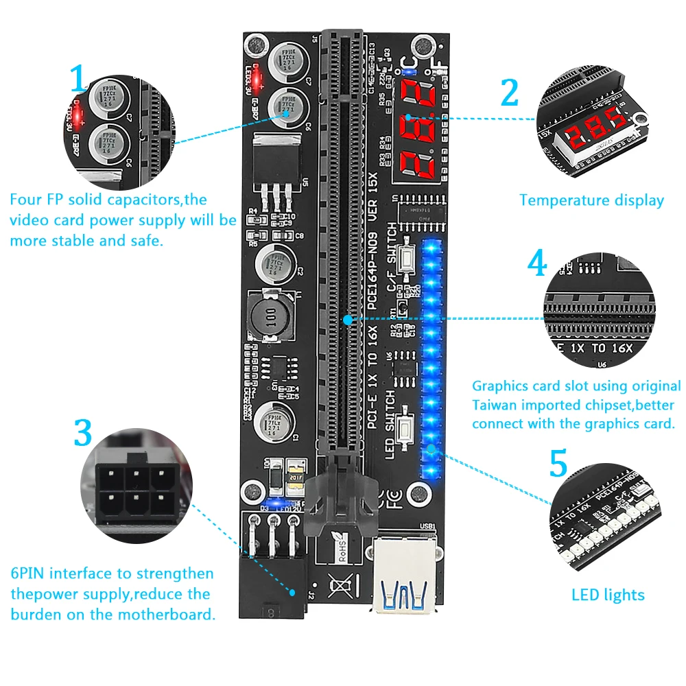 Funtion 5Riser card 6Pin Power 14 LED Lights