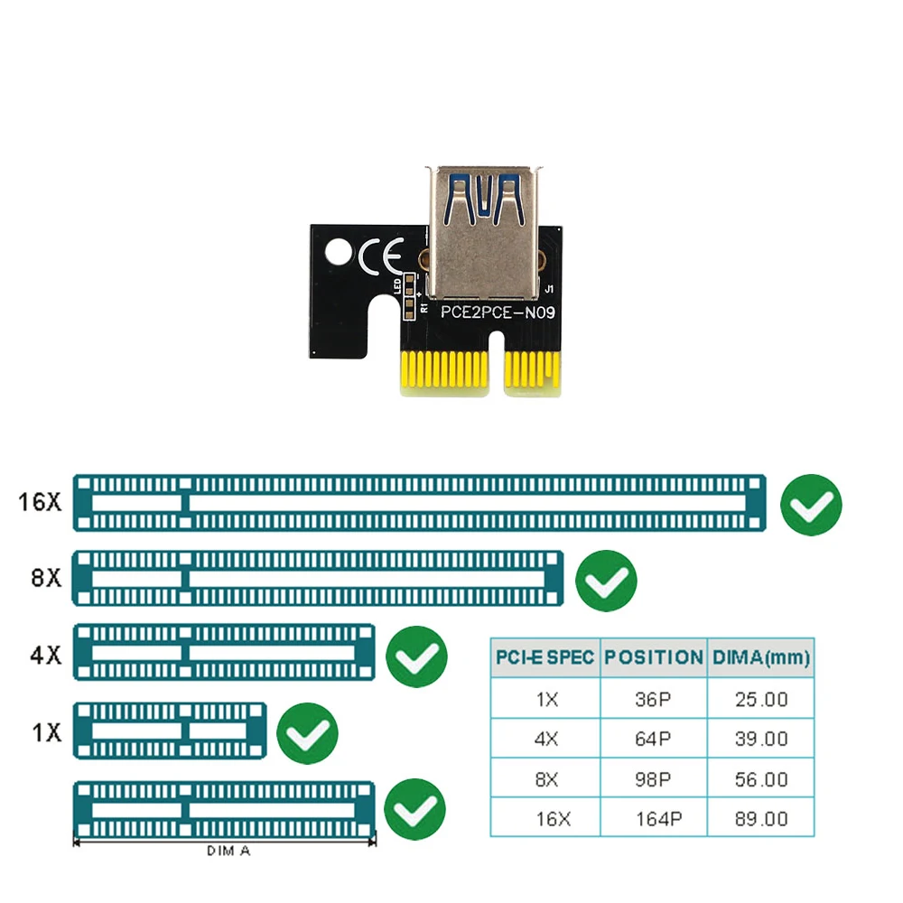 Райзер-карта PCI-E TISHRIC 1-10 шт., VER15X PCI Express 1X до 16X, ...