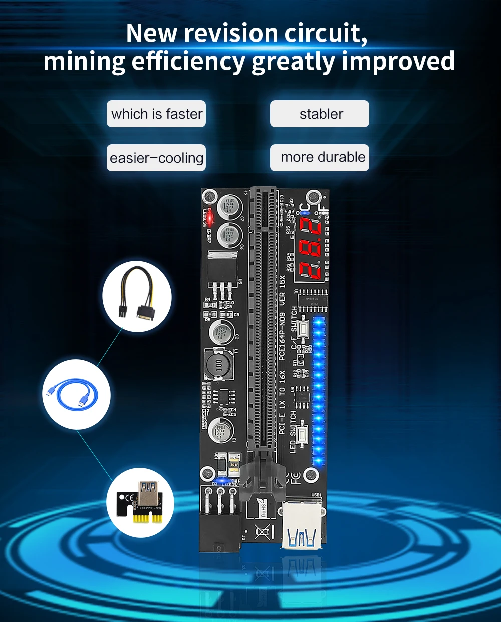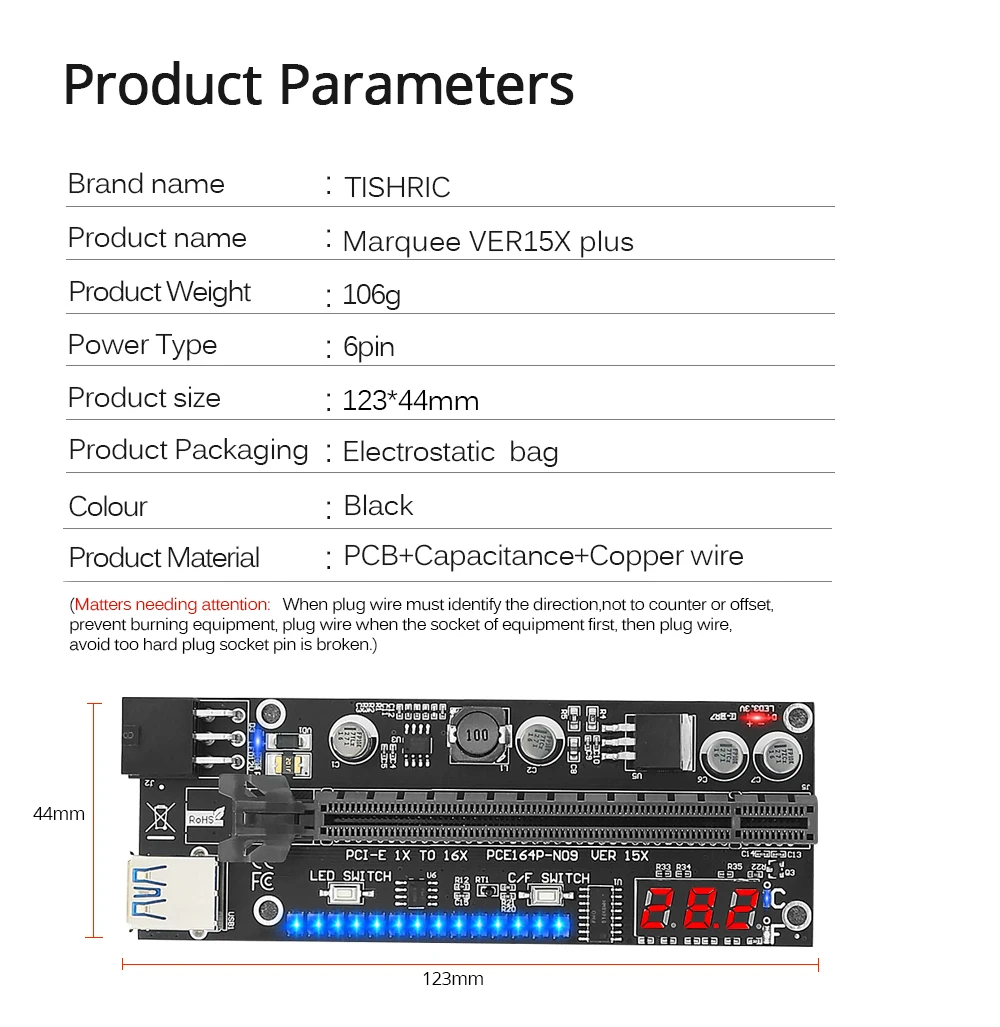 TISHRIC PCIE Riser 15x Plus PCI-E 16X Riser VER15x Riser card 6Pin Power 14 светодиодный дисплей температуры для майнинга биткойнов