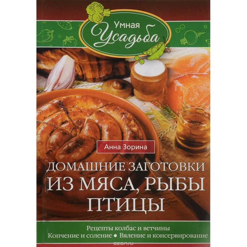 Книга с заготовками мяса, рыбы, птиц. Рецепты сосисок и ветчины, курение и посев, вязание и консервирование