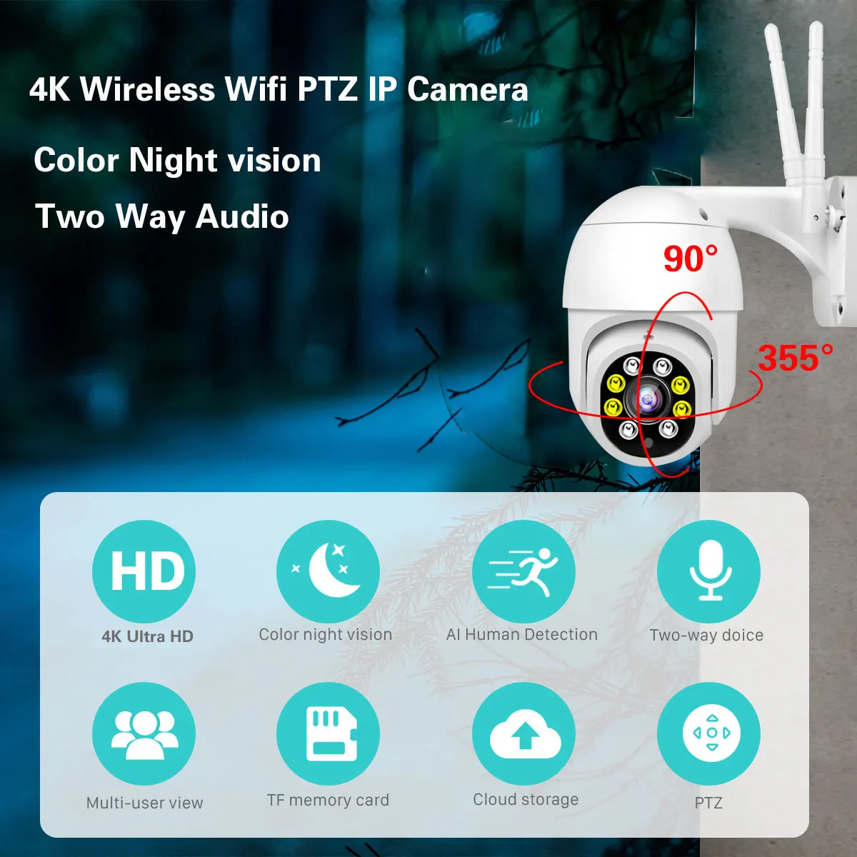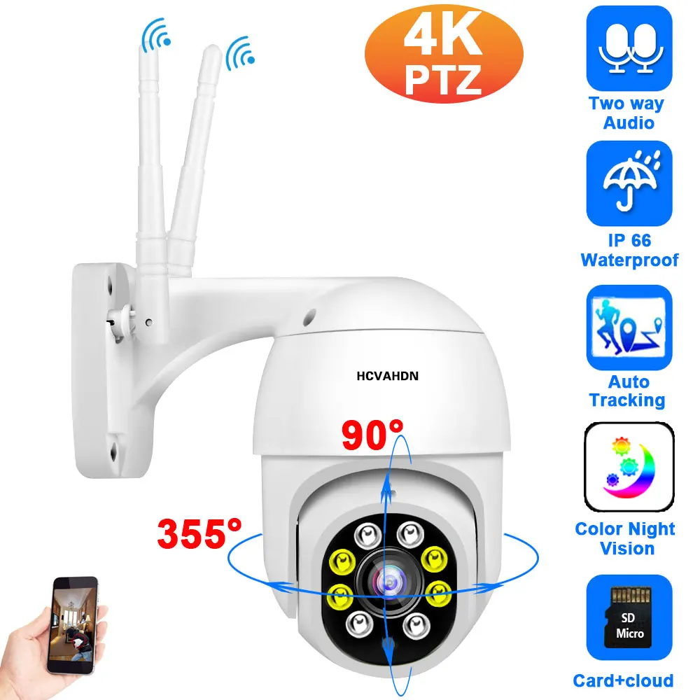 Камера видеонаблюдения Vdieo уличная с функцией ночного видения, Wi-Fi, 4K, 8 МП
