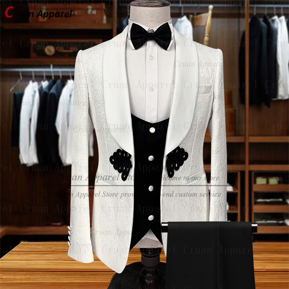 3 шт., жаккардовые свадебные костюмы для мужчин, пиджак и брюки