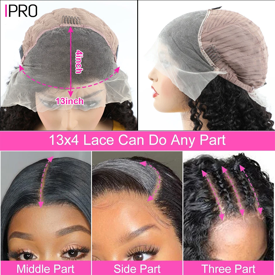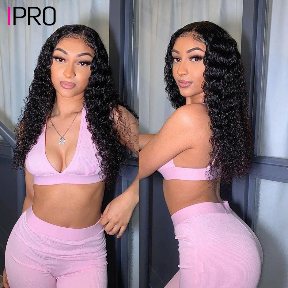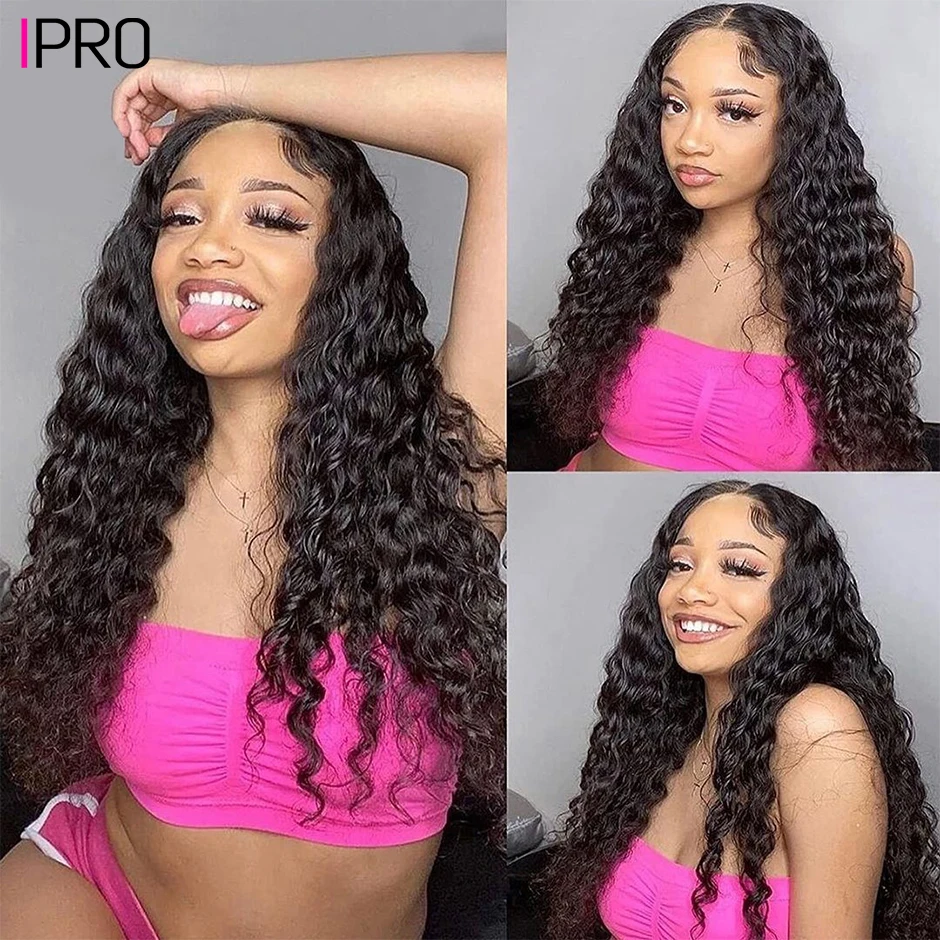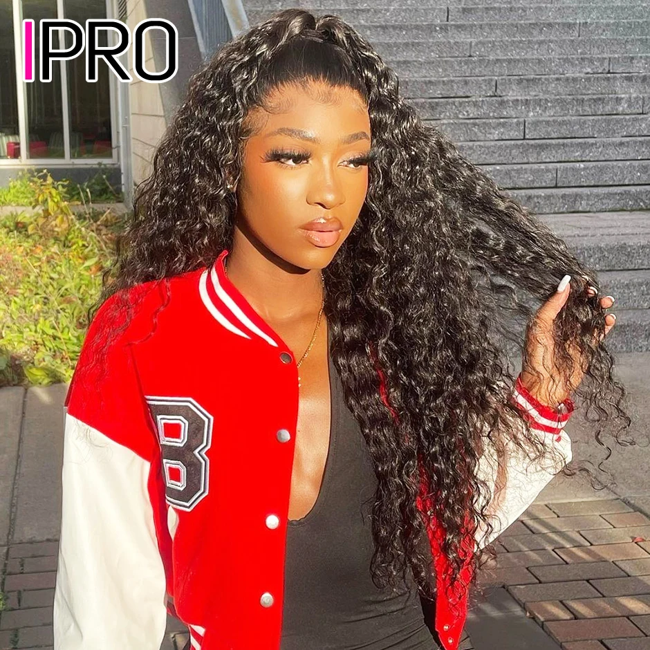 Парик IPRO для фронтальной съемки с глубокой волной, парики из 180% натуральных волос на сетке спереди, 13x6 13x4 HD, Прозрачный передний парик на сетке, парик с глубокой волной 4x4