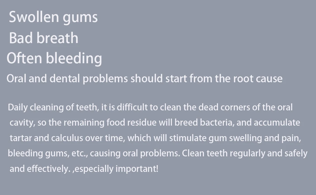 Если у вас есть воспаление десен, Пародонтоз и т. Д., это нормально иметь небольшое кровотечение десен при использовании продукта в первый раз. Добавьте краску в рот холодной водой и отрегулируйте масштаб зубной щетки на низкую передачу.