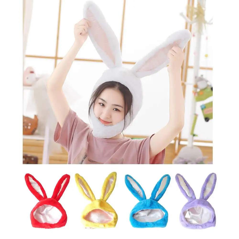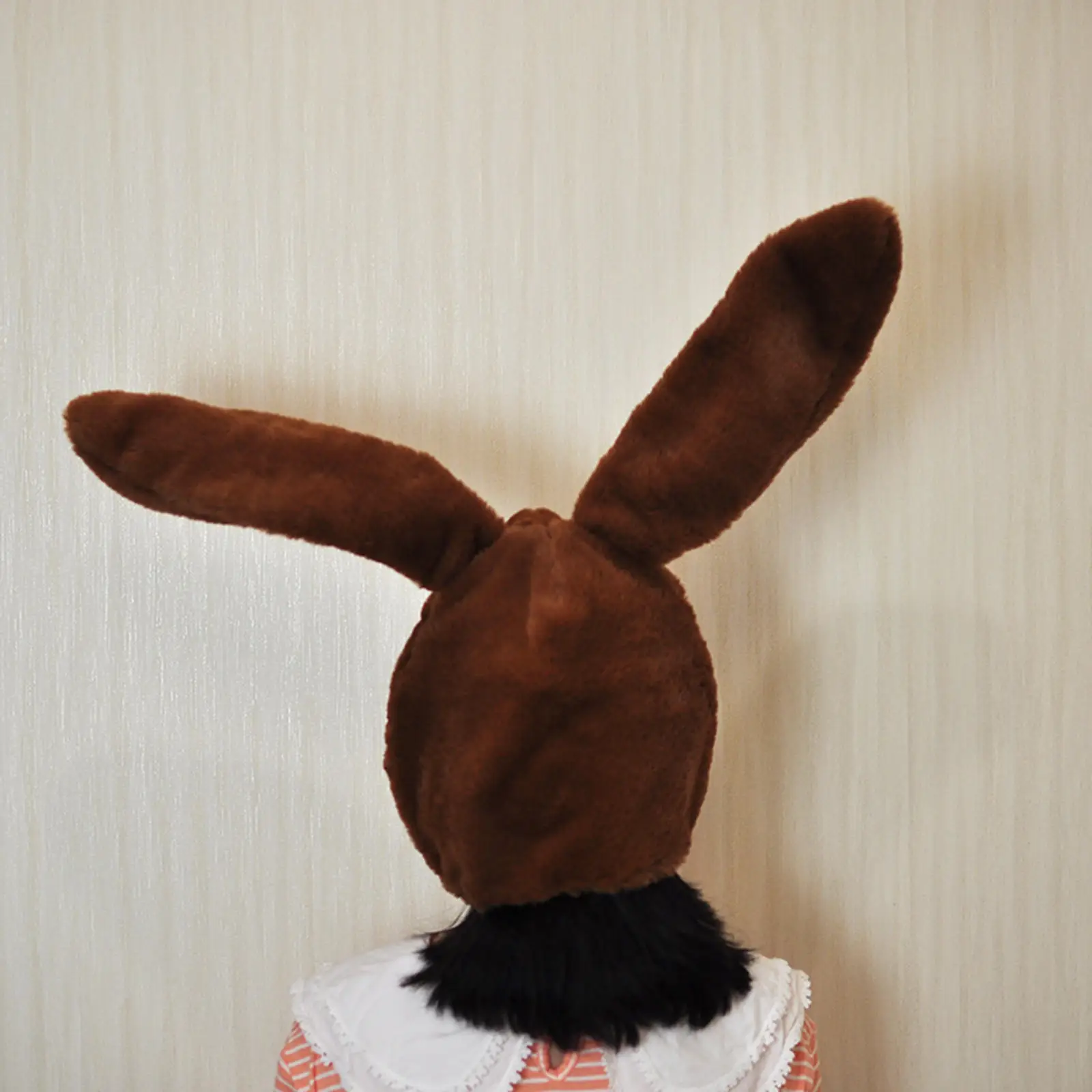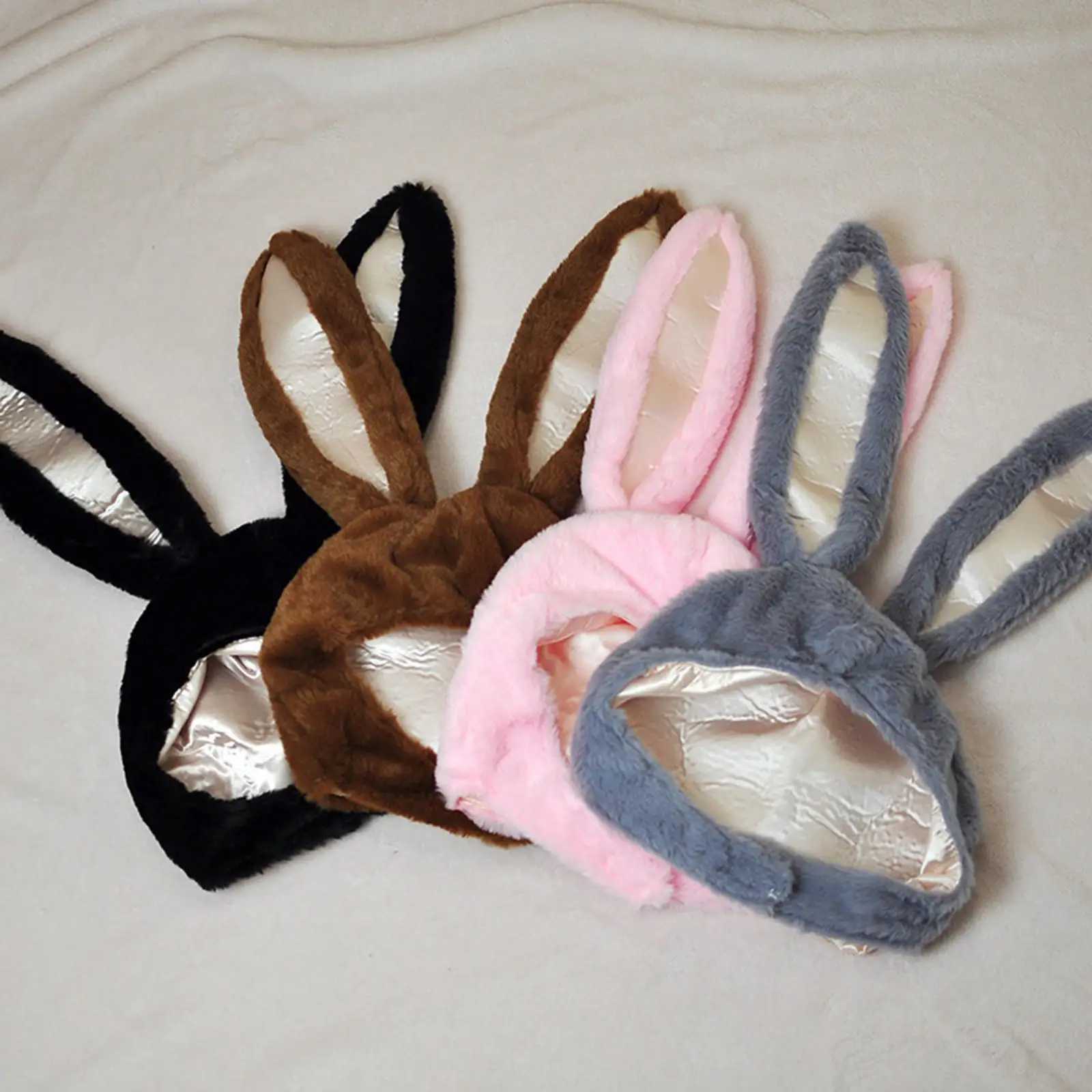 Шапка-капюшон с ушками кролика, хлопковая мягкая шапка-головной убор, милые Костюмные шапки для селфи, забавный зимний подарок для девочек, милая шапка-кролик с длинными ушками