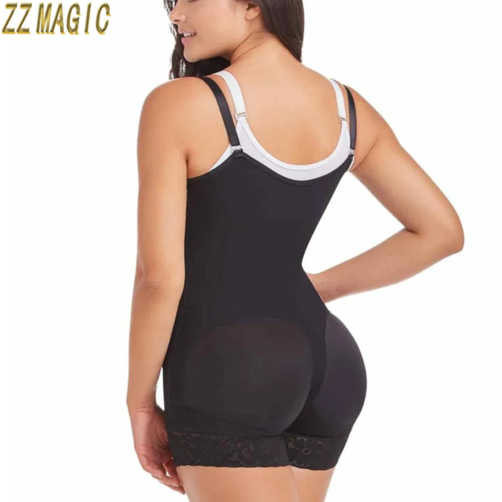 Регулируемая застежка на крючок. Этот утягивающий формирователь всего тела, открытый бюст, имеет 3 ряда крючков для регулировки сжатия живота, который вам нужен.