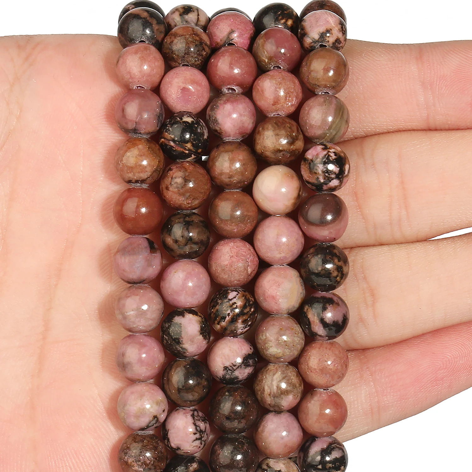 Бусины из родонита и натурального камня, Круглые Гладкие бусины россыпью с отверстием для изготовления ювелирных изделий, браслетов, ожерелий сделай сам 15 дюймов, Черное кружево