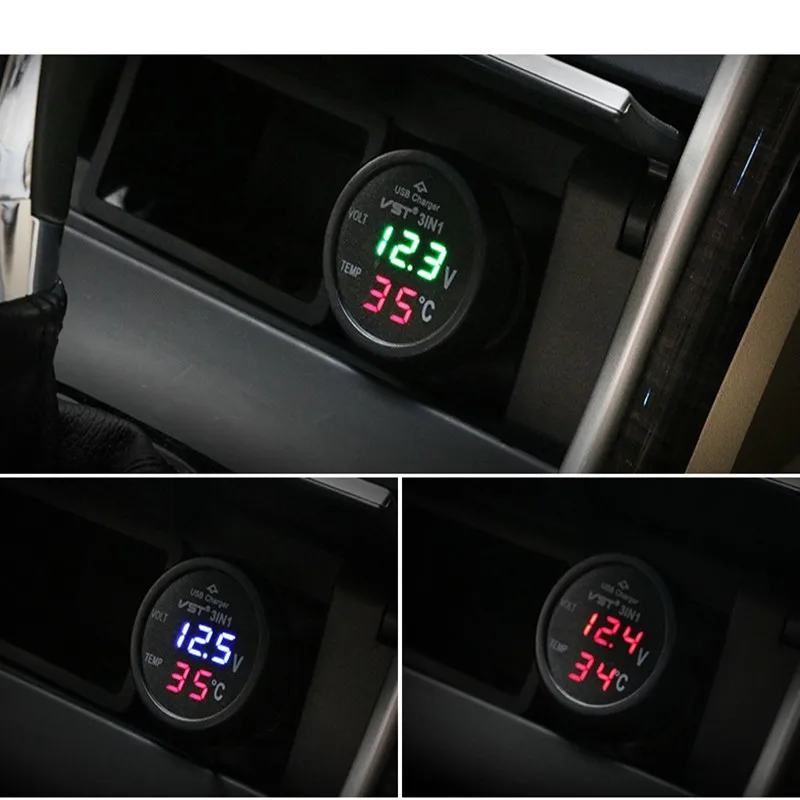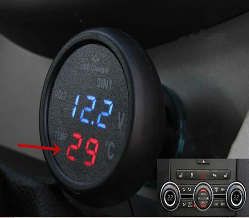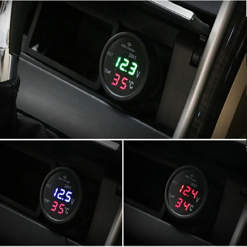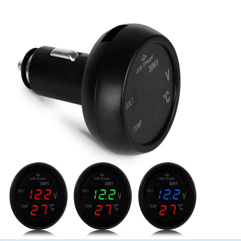 3 в 1 цифровой светодиодный Автомобильный вольтметр-термометр для прикуривателя автомобиля грузовика зарядное устройство USB 12 В24 В измеритель температуры вольтметр