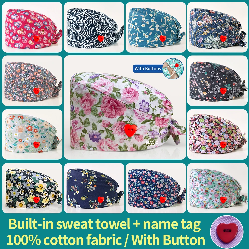 ШАПОЧКА медицинская с цветочным принтом, головной убор унисекс для врачей, медсестер, врачей, стоматологов, хирургическая Кепка для домашних животных