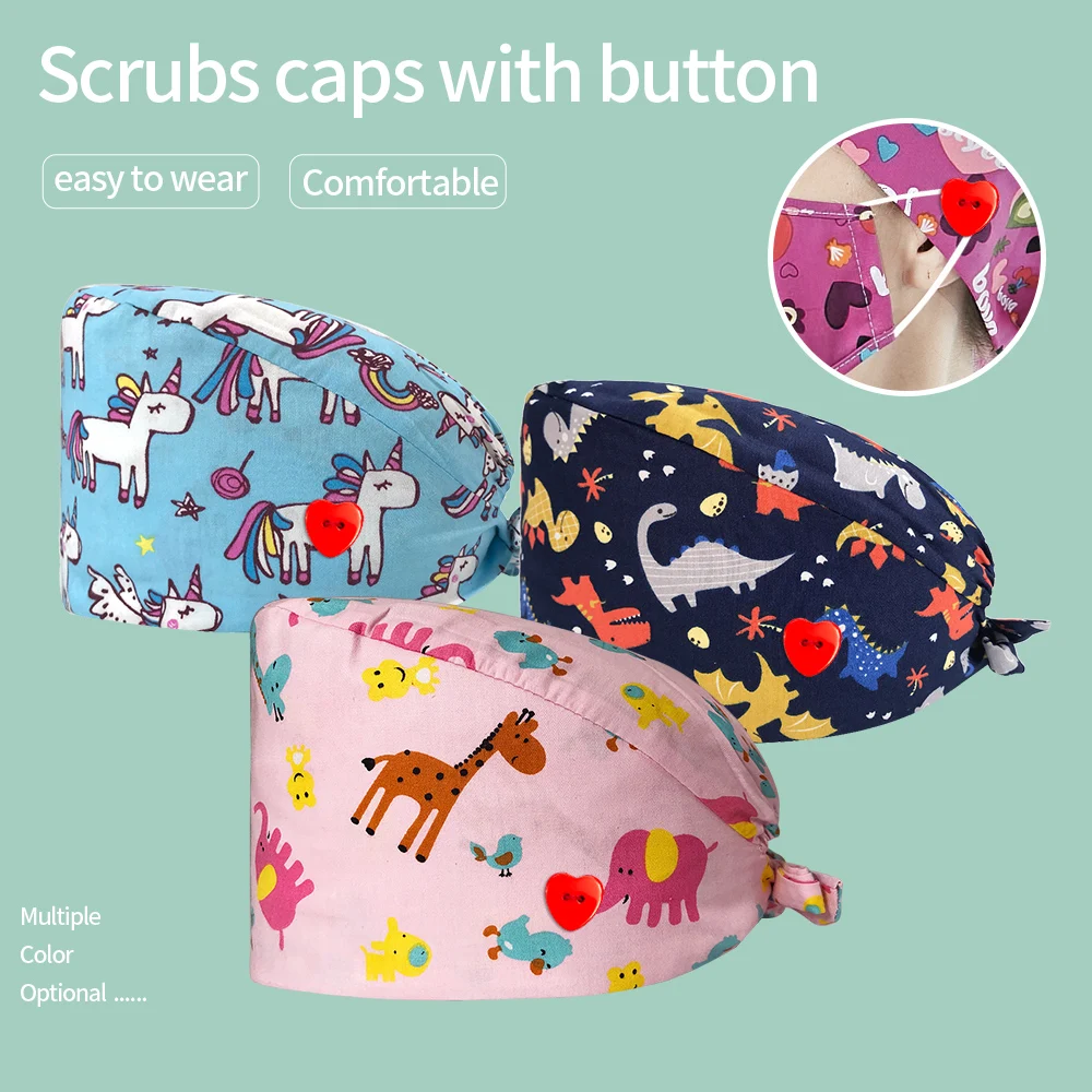 Шапка-медицинские шапочки для косметолога, мультяшный матовый принт...