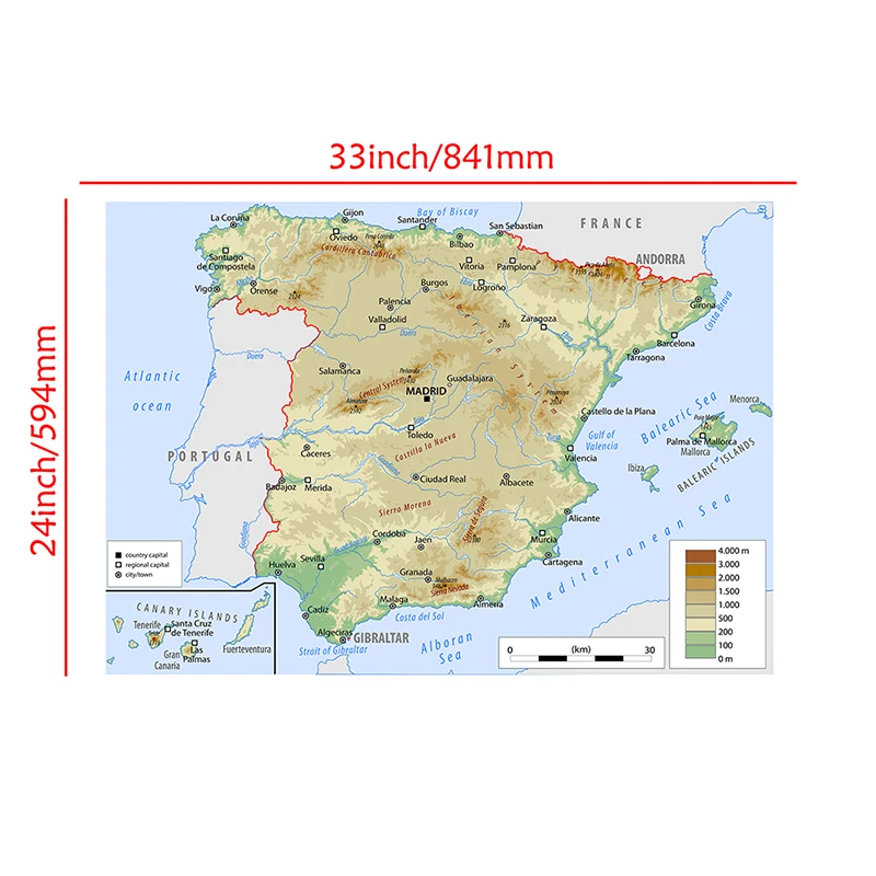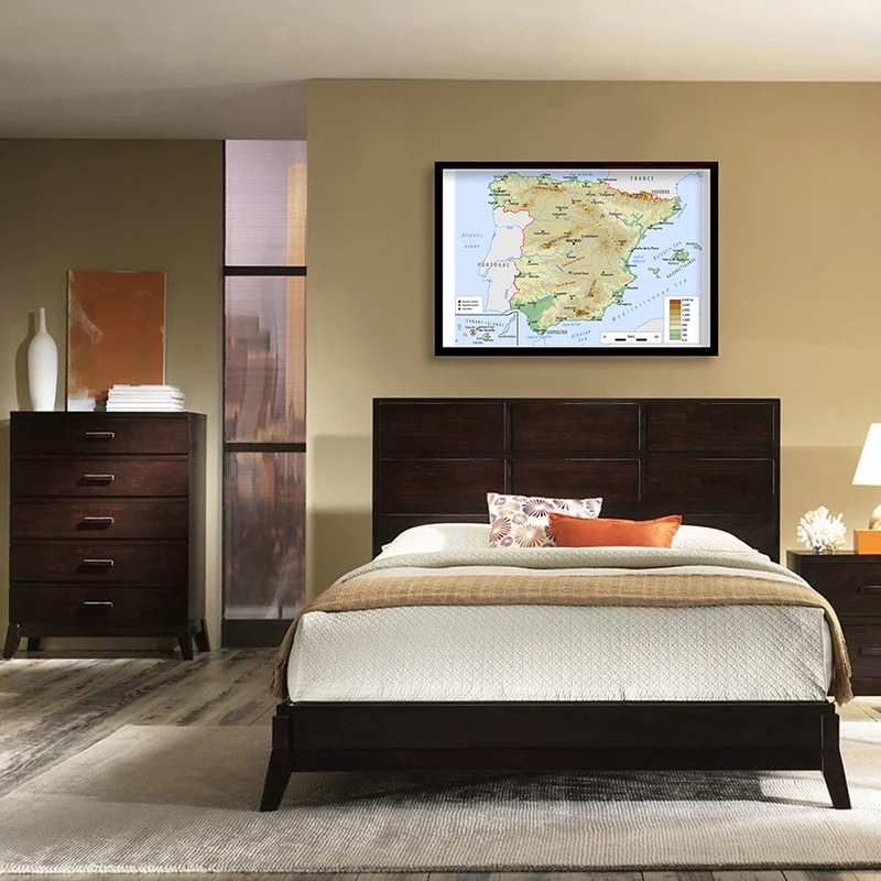 84*59 см топографическая карта Испании на английском языке, Картина на холсте без рамы, настенный художественный плакат и принты для гостиной, домашний декор