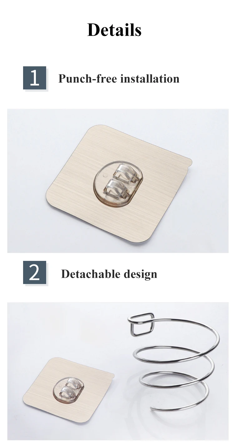 Ванная комната Фен держатель воздуходувка Домашний Органайзер клей настенный ногтей бесплатно никаких следов наклейки Уход за волосами сушилка стеллаж для храненияОсобенности:100% Новинка!Компактный настенный держатель для фена, высокое качество, полка для ванной, стеллаж для хранения фена, держатель для фена, органайзер для фена.Изготовлен из качественного нержавеющая сталь, светильник вес, антикоррозийный и прочный, большой грузоподъемности. Этот держатель для фена совместим с большинством типов и размеров фена.Нет бурения и твердой адгезии. Просто поместите крючки на присоске на плиточную стену, не повреждая стену. Присоска крепится только на непористые, гладкие поверхности, такие как стекло, полированная плитка, поверхность из нержавеющей стали и так далее.Практичный дизайн. На держателе есть разъем для крепления проводов фена. С защитной трубкой вокруг внутреннего края отверстия, чтобы защитить фен от царапин металла.Характеристики:Материал: нержавеющая стальРазмер: как на картинкеВнимание:1. Пожалуйста, допускайте небольшие отклонения в размере из-за измерения человеком.2. Пожалуйста, не Наклейте держатель на окрашенные стены или обои, так как он снимет ваши краски или обои.3. Подождите 24 часа после подвешивания перед использованием.