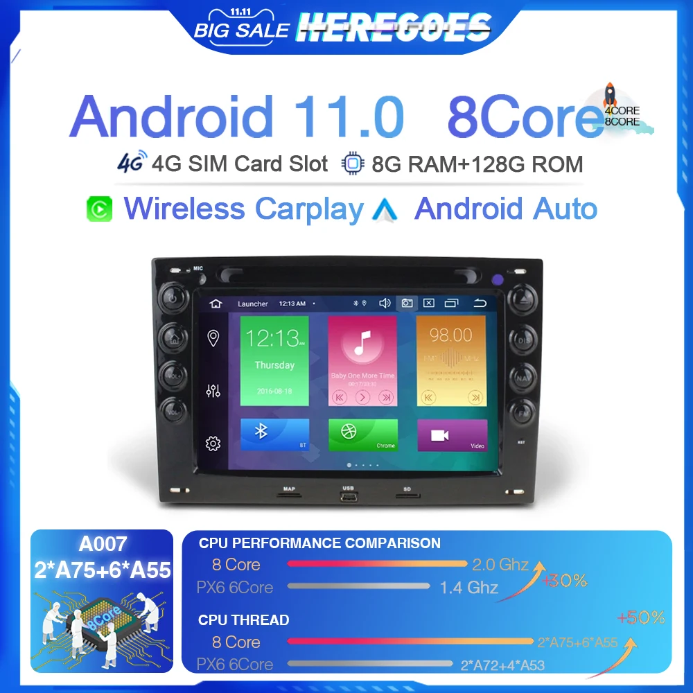 Автомобильный DVD-плеер Carplay, 2DIN, Android 11, для Renault Mega...