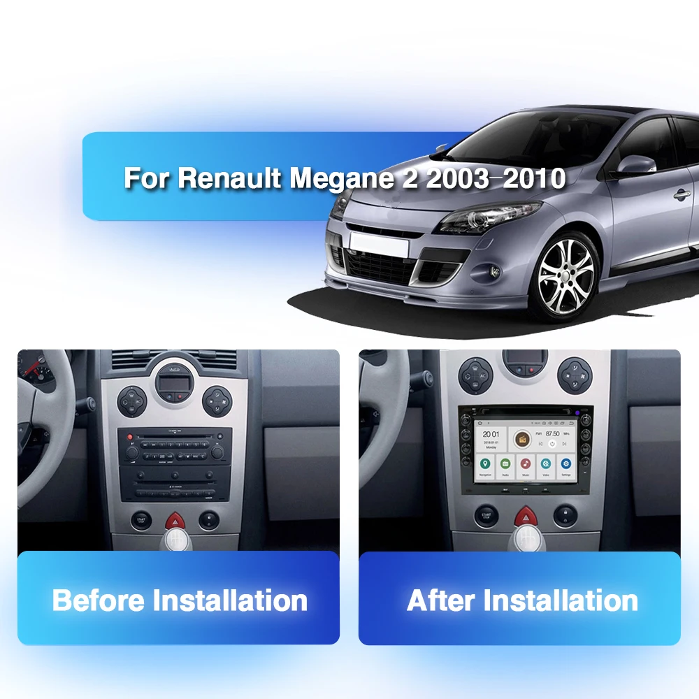 Автомобильный мультимедийный видеоплеер Carplay 2Din Android 11 для Renault Megane 2 II 2002 2003 2004 2005 - 2009 GPS-навигация Радио DSP