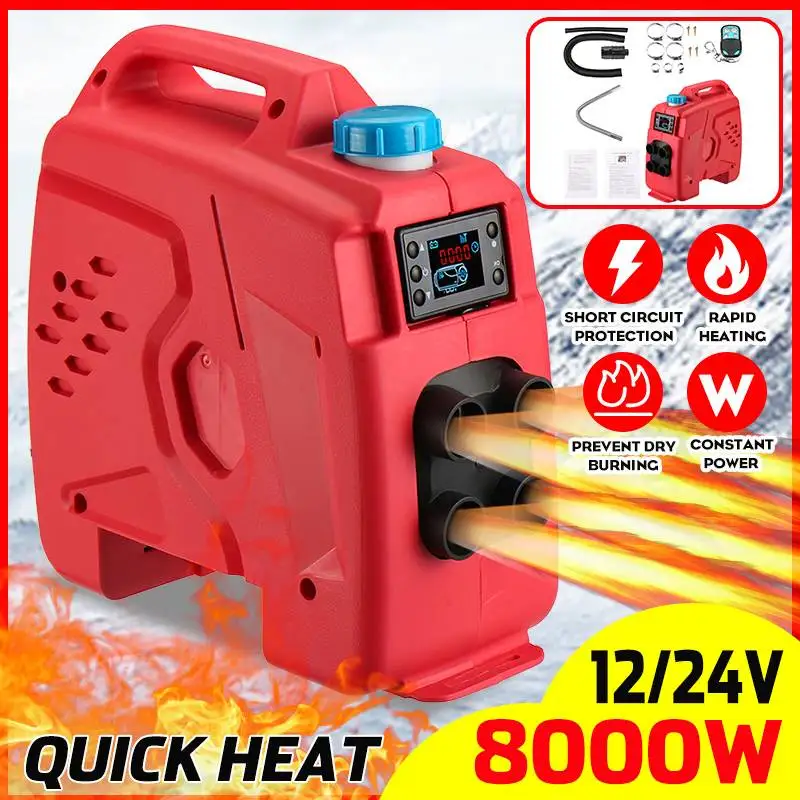 Посылка:1 хост воздушного нагревателя1 х клавишный переключатель2 х впускной трубы1 х выхлопная труба7 x зажимов5 x винт1 х гайка1 х масляный насос1 ИнструкцияОсобенности:-Простота установки, экономичность и удобство. Может использоваться в качестве размораживания оконного стекла, но также для кабины, студии, каюты теплоизоляционных услуг.-- Все в одном блоке, экономит место и легко перемещается.-Нагреватель может быть применен для нагрева кабины грузовых автомобилей, аккумуляторных батарей автомобилей и всех видов других транспортных средств.-Летучая технология, с помощью керамической вилки зажигания нагревание топлива испаряется в газ, быстрое зажигание, полное сгорание-Дальность дистанционного управления может достигать 50 м-- Большой экран цифровой дисплей-Четыре отверстия воздуховодаСпецификация:Мощность: 8 кВтНапряжение: 12 В/24 В (опционально)Цвет: красныйРазмер: 34*17*40 см/13,4*6,7*15,7 ДюймовЭффективное расстояние дистанционного управления: 50 метровПримечание:1. Замеры сделаны вручную, поэтому возможны 0,5-1 см из-за различий в связи с тем, что измерения выполнены вручную.2. В связи с использованием разных по светильник экране монитора фактический цвет товар точно такой же, как и цвет изделия на фото может быть s светильник ly отличается из-за характеристик монитора компьютера.