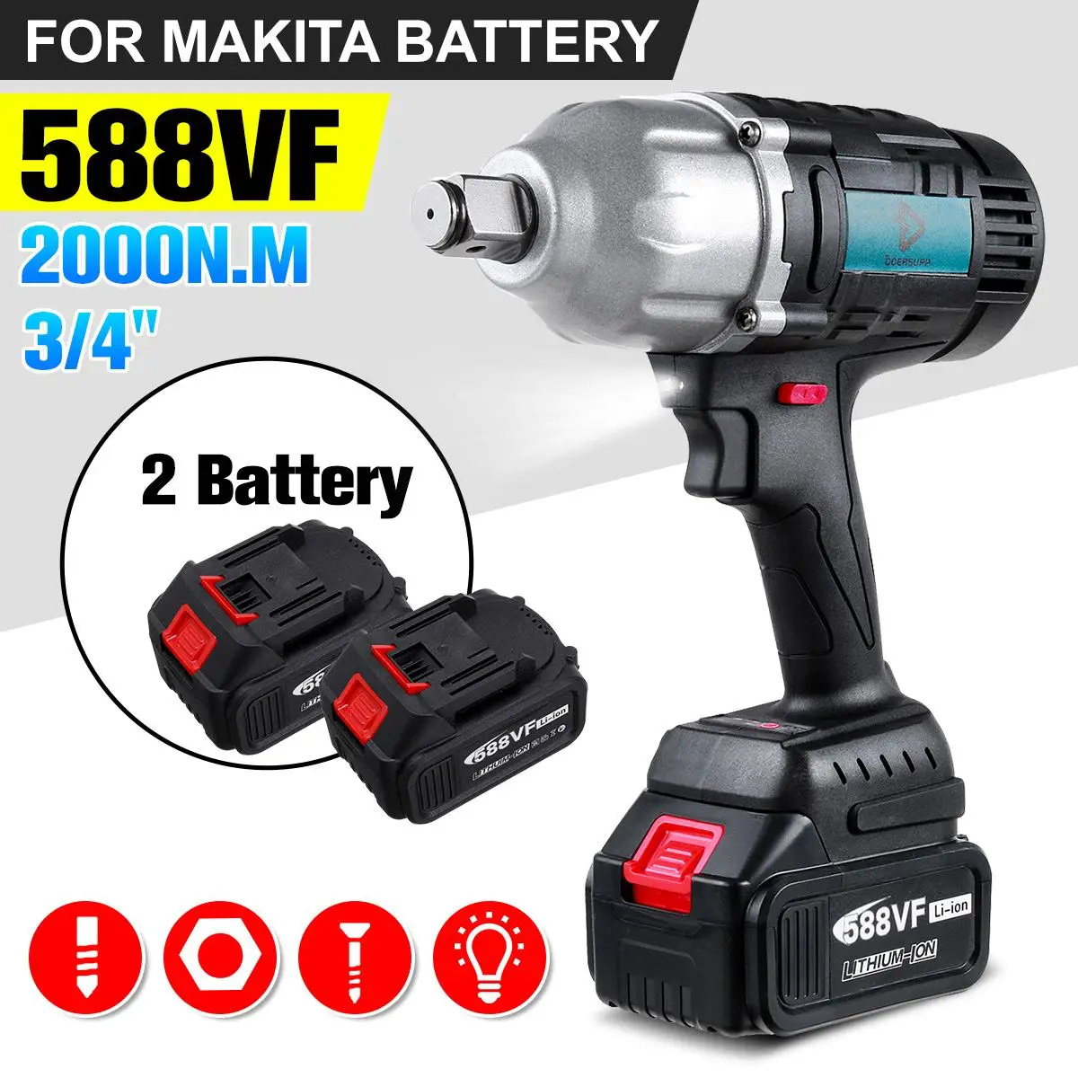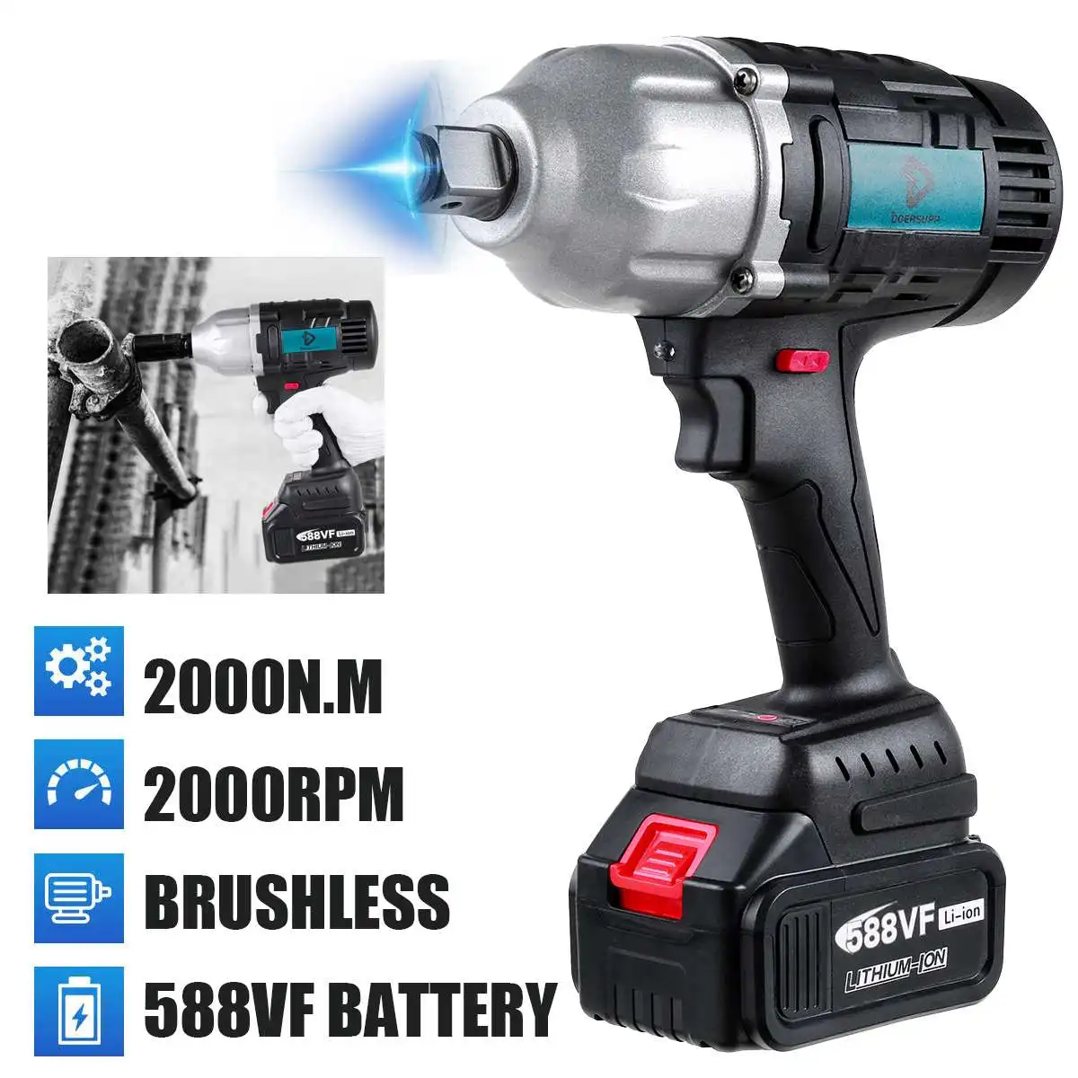 Особенности:● 2000N.M высокий крутящий момент, супер мощность● Функция блокировки безопасности, эффективная защита● Большой медный сердечник, высокая прочность, низкое тепловыделение, лучший эффект удара● Светодиодный светильник, удобный в темной рабочей среде● Плавное переключение скорости, легко подходит для различных условий работы● Подходит для строительных площадок, технического обслуживания, деревообработки и т. д.● Вал из вольфрамовой стали, высокая твердость и износостойкость● Два режима вращения● Эргономичная противоскользящая ручка обеспечивает комфорт и контроль