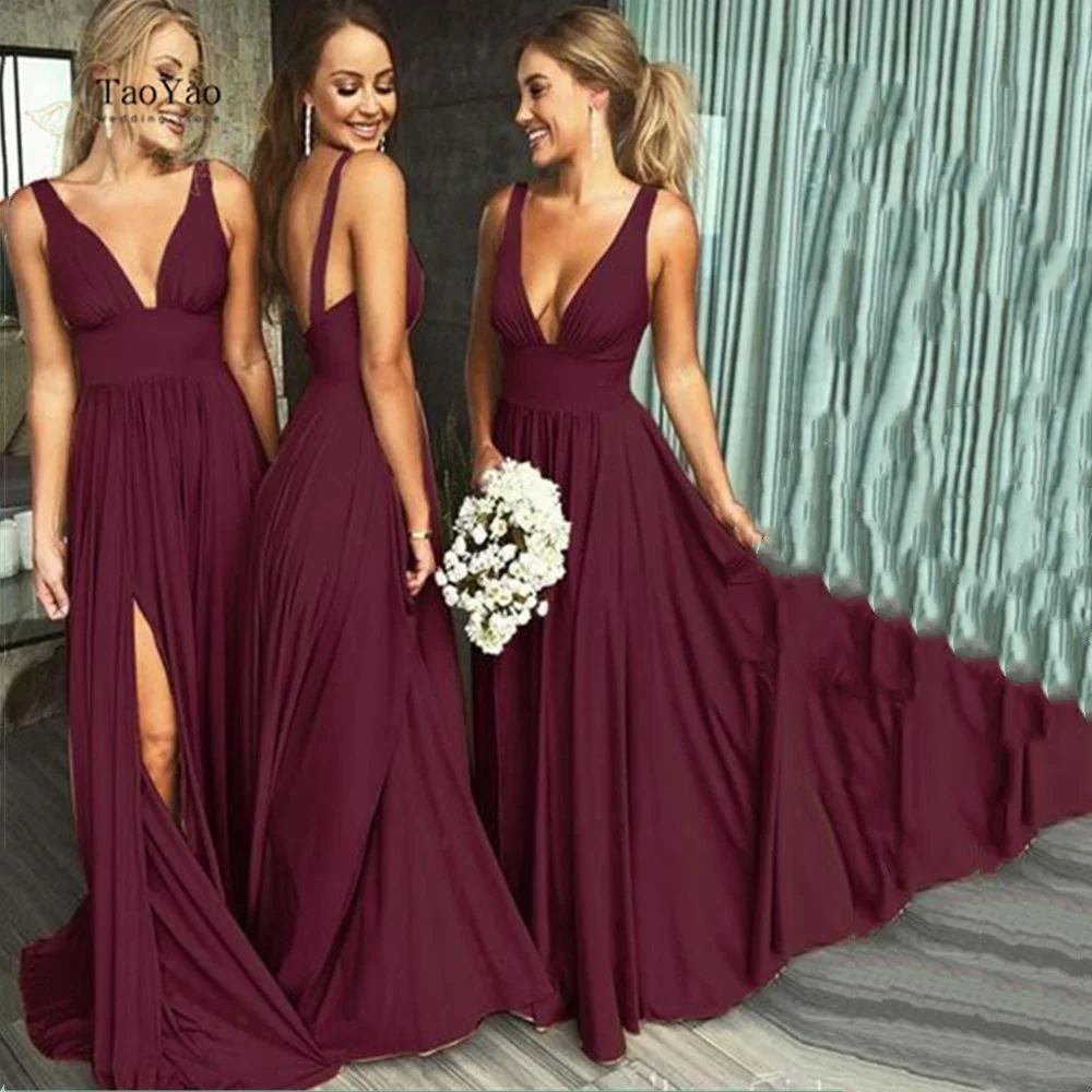 Простое длинное платье для подружки невесты, сексуальное Элегантное платье без рукавов с глубоким V-образным вырезом на бретельках для выпускного вечера, платья для вечеринок, женские вечерние платья