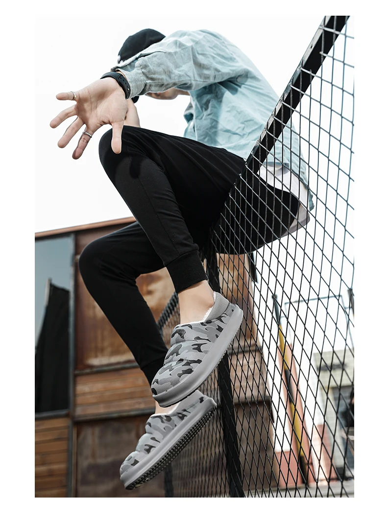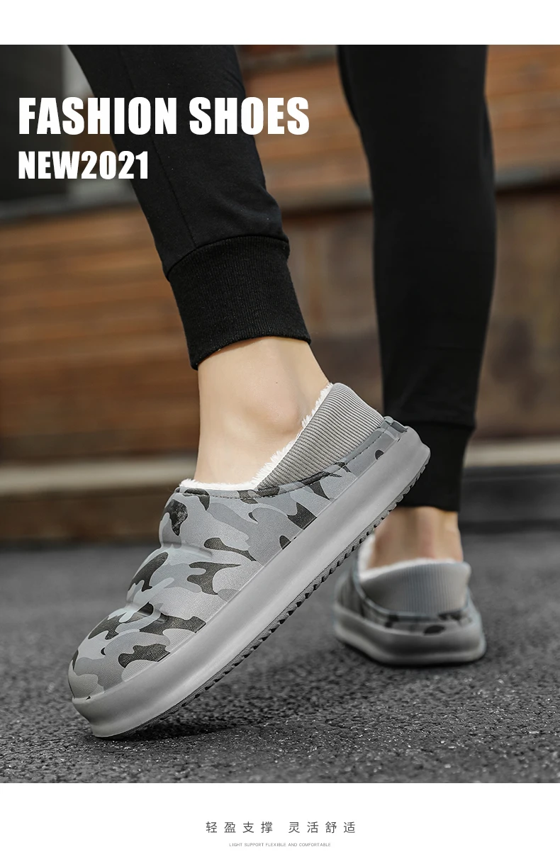 Зимние теплые водонепроницаемые меховые тапочки для мужчин и женщин, мужская обувь, Нескользящие плюшевые хлопковые шлепанцы с принтом, для дома и улицы, на толстом каблуке