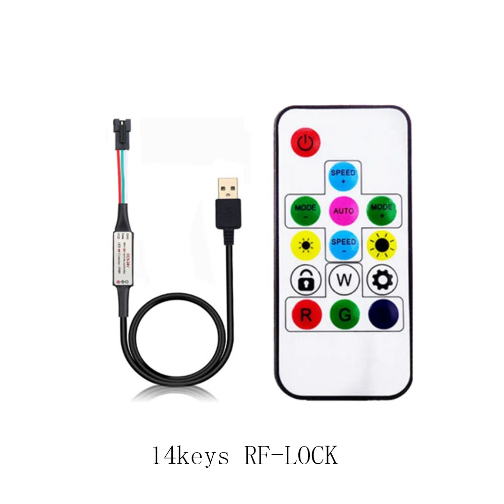 1*1 м/2 м/3 м/4 м/5 М WS2812 Светодиодная лента1*5 в 14 клавиш USB контроллер (без батареи)