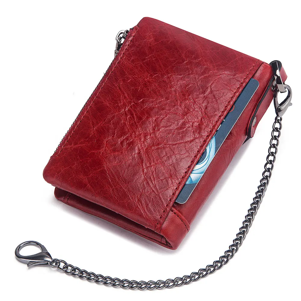 Модный женский кошелек из натуральной кожи, Дамский бумажник на молнии с монетницей, кредитница из воловьей кожи с RFID-защитой и цепочкой, портмоне