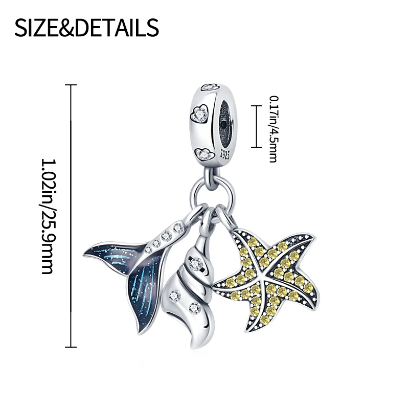 Серебряные бусины-шармы рыбий хвост в виде раковины и морской звезд...